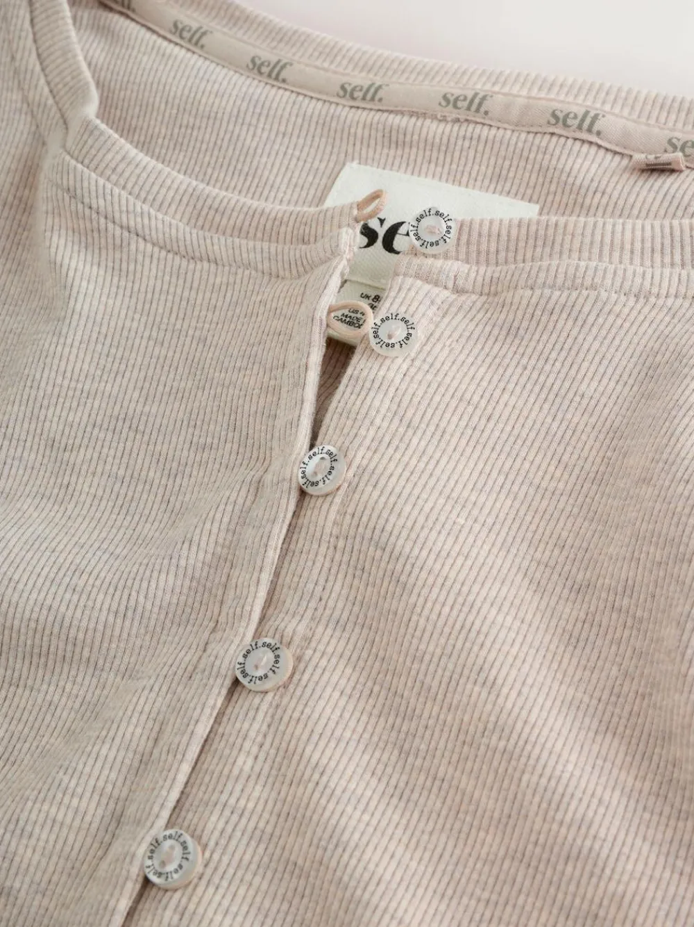 Discount self. Ribbed Button Through Pyjamas Oatmeal