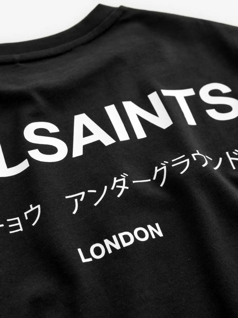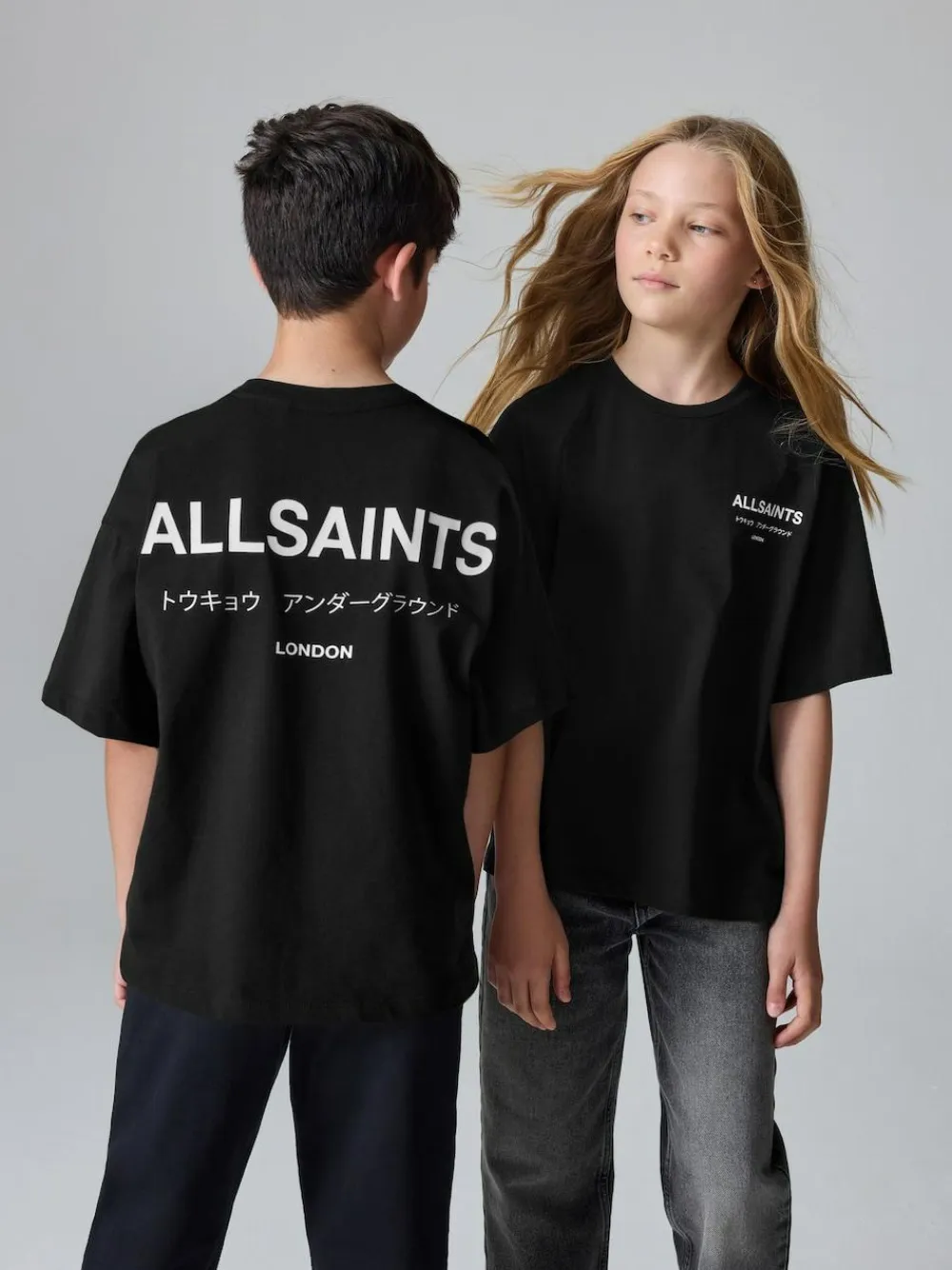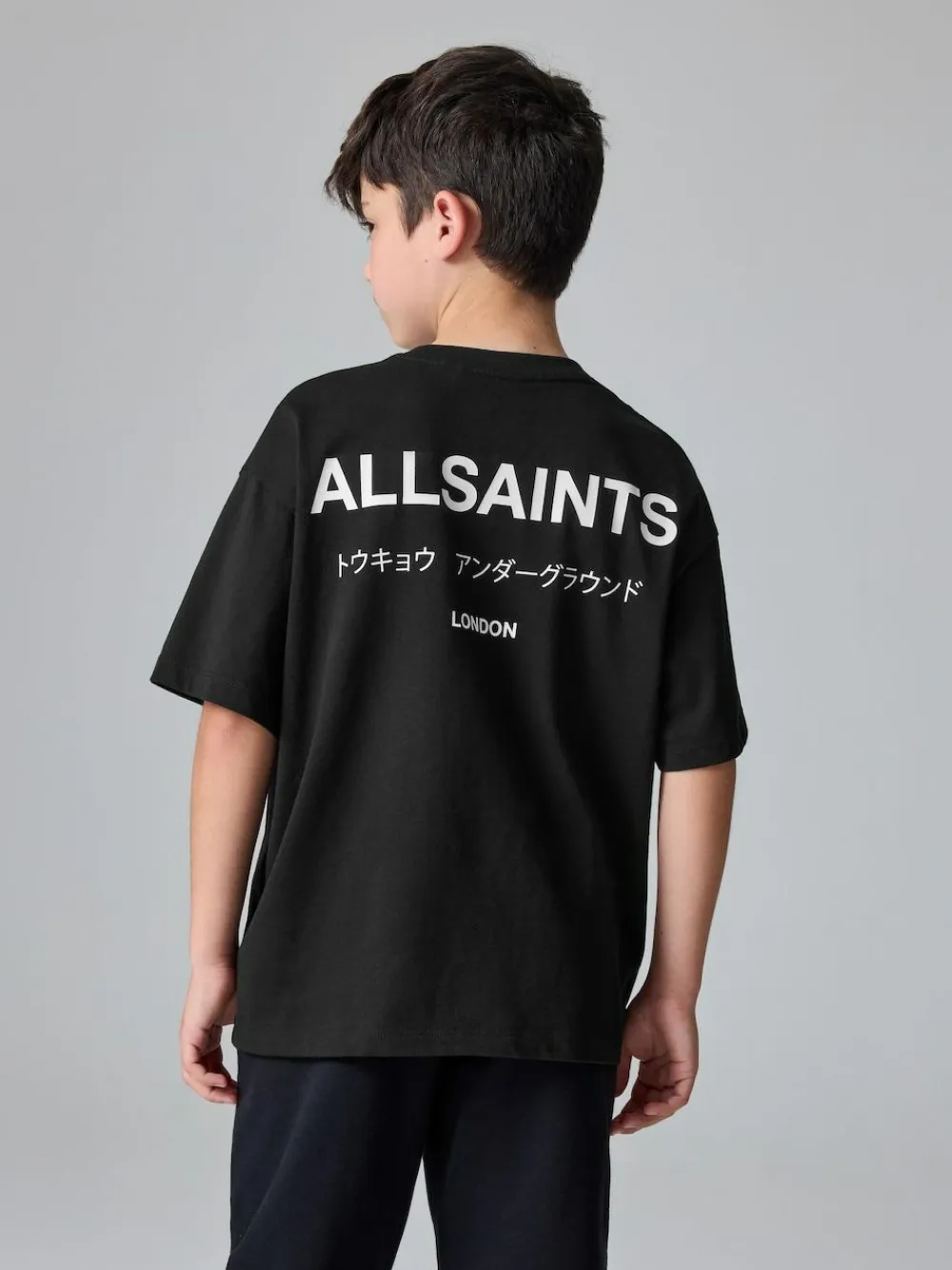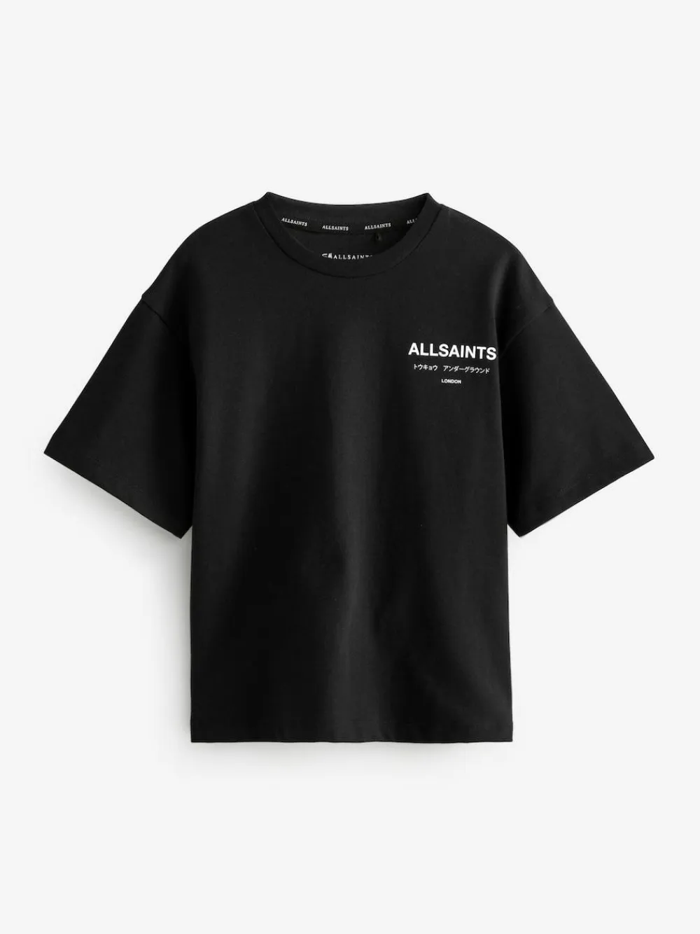 Refresh their t-shirt rotation with the black Underground Oversized Crew T-Shirt. Designed in a soft cotton with an oversized fit, this unisex wardrobe staple also has a crew neck, short sleeves and the AllSaints signature logo on the chest and back. Pair it with jeans and trainers to complete the look. Unisex design 100% cotton AllSaints signature logo on chest and back Oversized fit Machine washable. Main 100% Cotton. Neck 95% Cotton, 5% Elastane.