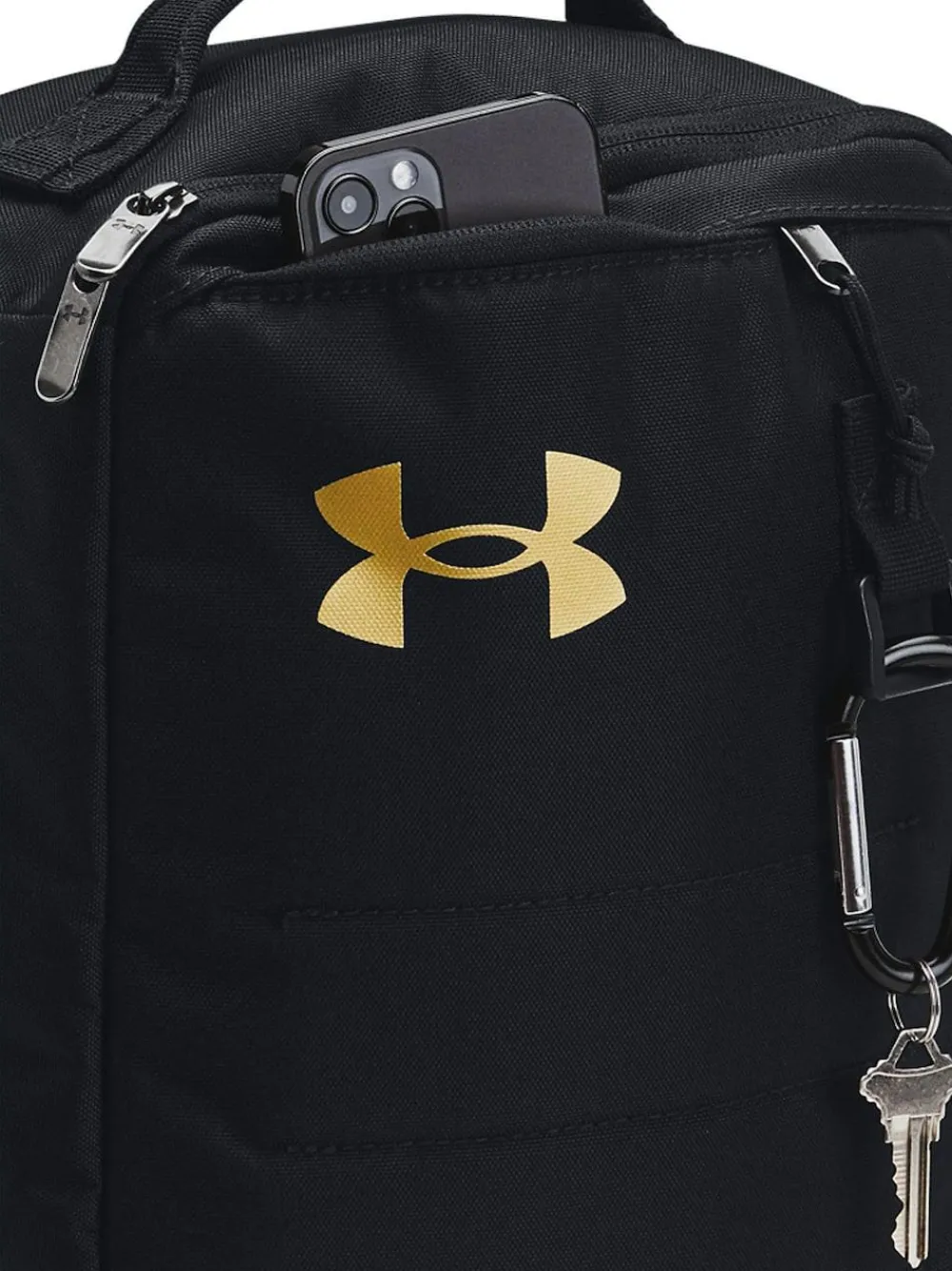 Water-repellent UA Storm technology keeps your essentials dry. Durable PU-coated material. Fits a pair of shoes up to a size 14, with zip zip-around opening for easy access, Front zip pocket. 100% Nylon.