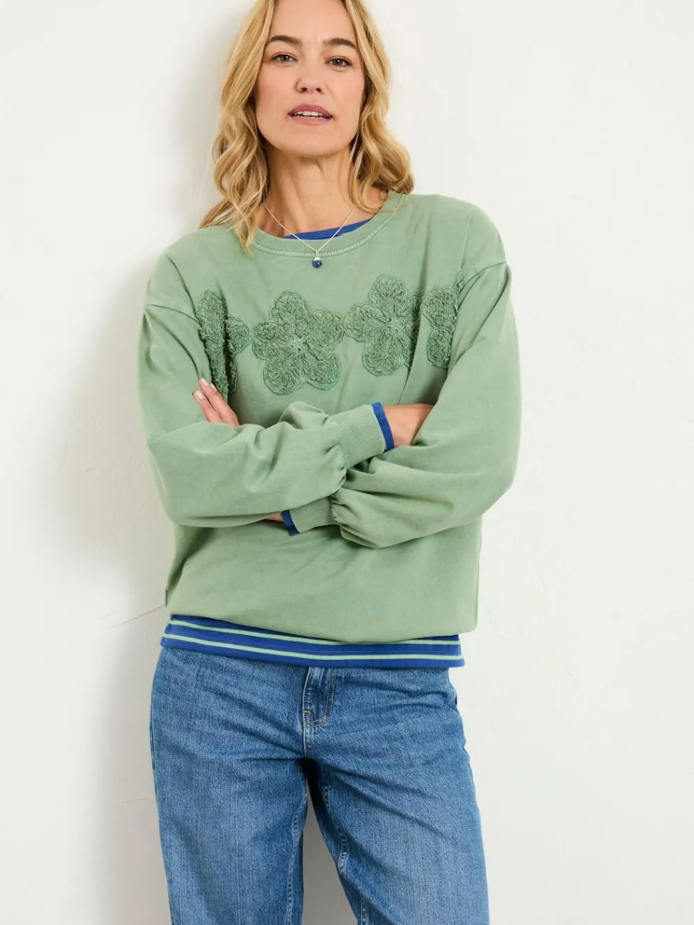 The Alex crew sweat features a relaxed fit with floral placement detailing across the front for a subtle lift. Made from a comfy cotton fabric with a classic crew neckline, it’s perfect for layering over jeans or leggings – whether you’re heading out or winding down. Machine washable. Main 100% Cotton. Rib 96% Cotton, 4% Elastane. Embroidery 100% Cotton.