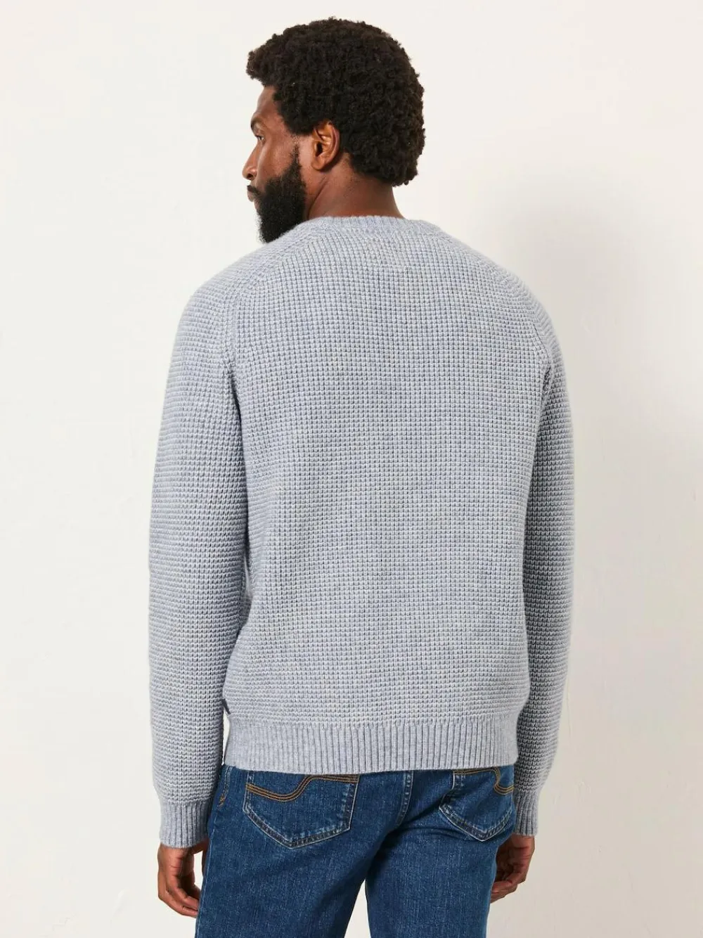 Our Bourton knitted crew neck jumper is crafted from a soft, textured yarn for warmth and comfort. Designed with a classic crew neckline and a relaxed fit, it’s finished with ribbed cuffs and hem for a clean, easy silhouette. A versatile knit that pairs effortlessly with jeans, chinos, or layered over a shirt. Machine washable. Body 64% Recycled polyester, 30% Acrylic, 6% Wool. Rib 62% Recycled polyester, 26% Acrylic, 6% Wool, 5% Nylon, 1% Elastane.