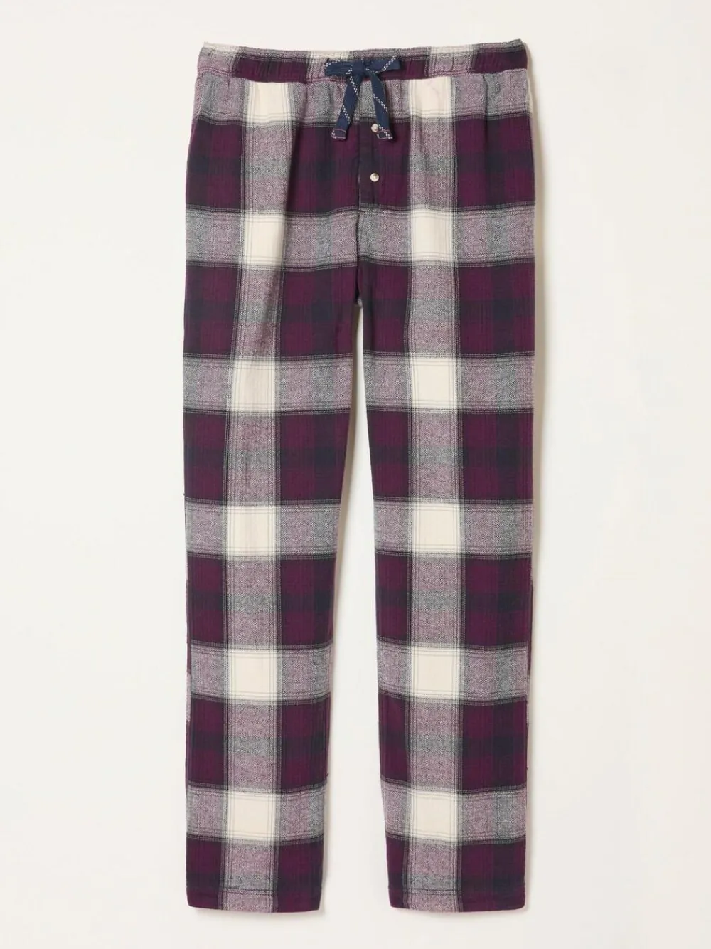 Sleep and relax in style with our pyjama bottoms. Supersoft and breathable, made out of a lovely fabric blend with a hint of stretch, these are the perfect addition to those essential duvet days. With a loose fit and a drawcord waist, your comfort is our priority. Pair with the matching jumper for a put together lounging look. All over check pattern Drawcord waistband Pockets Heavyweight fabric Regular inside leg: 79cm Machine washable. Main 100% Cotton. Trim 100% Cotton.