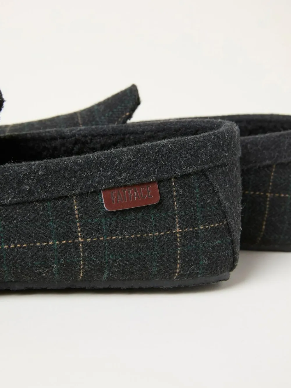 Fat Face FatFace Noah Green Check Moccasin^ Slippers|Slippers
