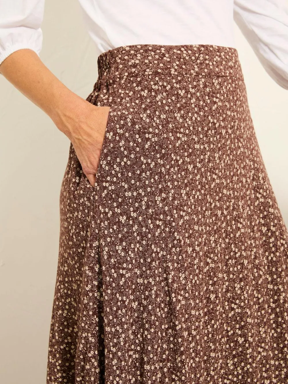 The Sadie midi skirt is crafted from 100% viscose fabric making it light and airy with a soft drape and all-over ditsy print. Designed with a comfortable waistband and easy A-line shape, it’s perfect for sunny days, weekend plans, or dressing up just a little. Simply pair it with a tee, blouse or knit. Regular waistband to hem 35″ / 89cm. Machine washable. 100% Viscose.