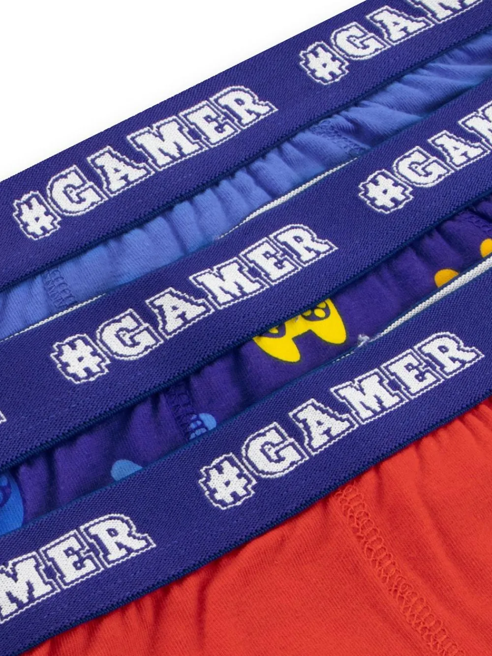 Level up his everyday essentials with this 3 pack of boys gaming boxers from Harry Bear. Packed with playful style, these cotton trunks feature bold multicolour game controller prints. Each pair comes with a striking ‘#GAMER’ waistband for a cool finishing touch he’ll love. The set includes navy kids boxers with an all over controller print, a bright red pair with three controller graphics, and a blue pair with a single standout design. Designed for comfort and fun, these boys trunks are perfect for active days, chilled gaming sessions, or everyday wear. Whether you call them boys pants or kids boxers, this multipack makes dressing easy and exciting. Ideal as Harry Bear gifts for children or playful gifts for boys, these comfy and cool trunks are a real game changer for any collection. Machine washable. 100% Cotton.