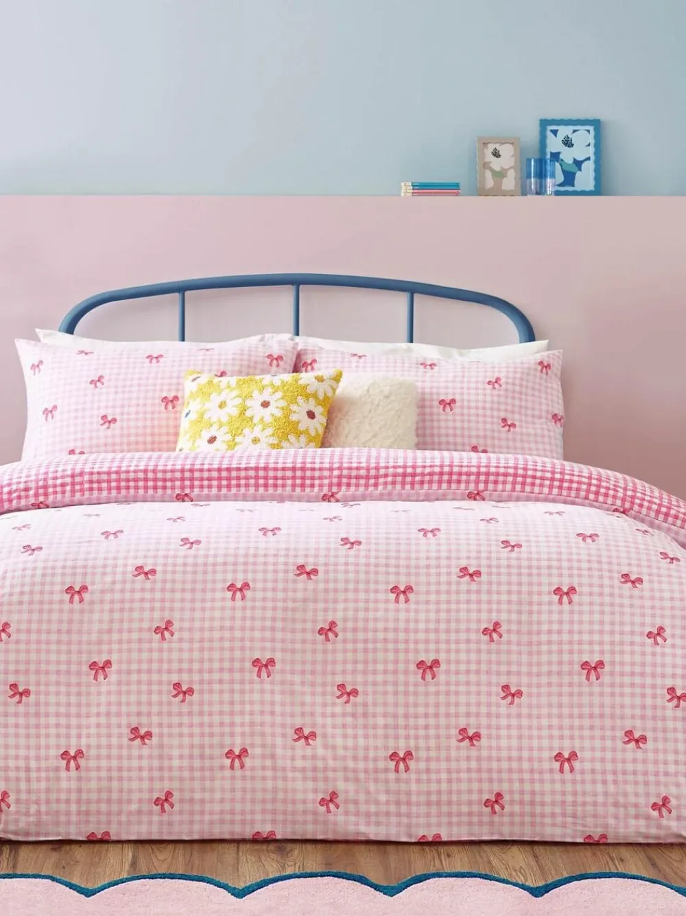 heya home Pink Gingham Bows Duvet Set^ Branded Bedlinen