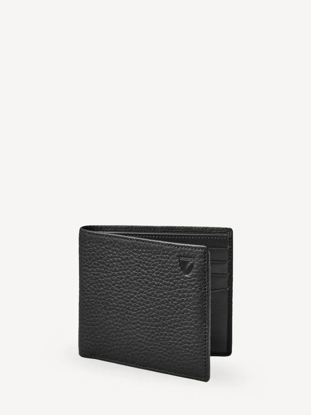 Hot Aspinal of London Billfold Wallet 8CC Pebble with Smooth Interior Leather Black