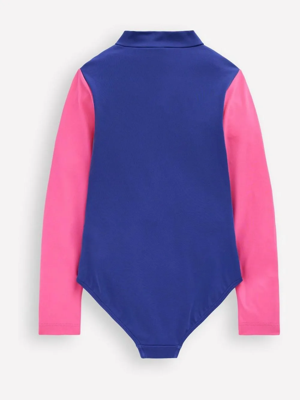 Covered in a playful print, this swimsuit is stitched with a zip to make changing a breeze, and finished with long sleeves in case the British weather turns (spoiler: it will). Don t you just love the rainbow and hearts? Machine washable. 80% Nylon, 20% Elastane.