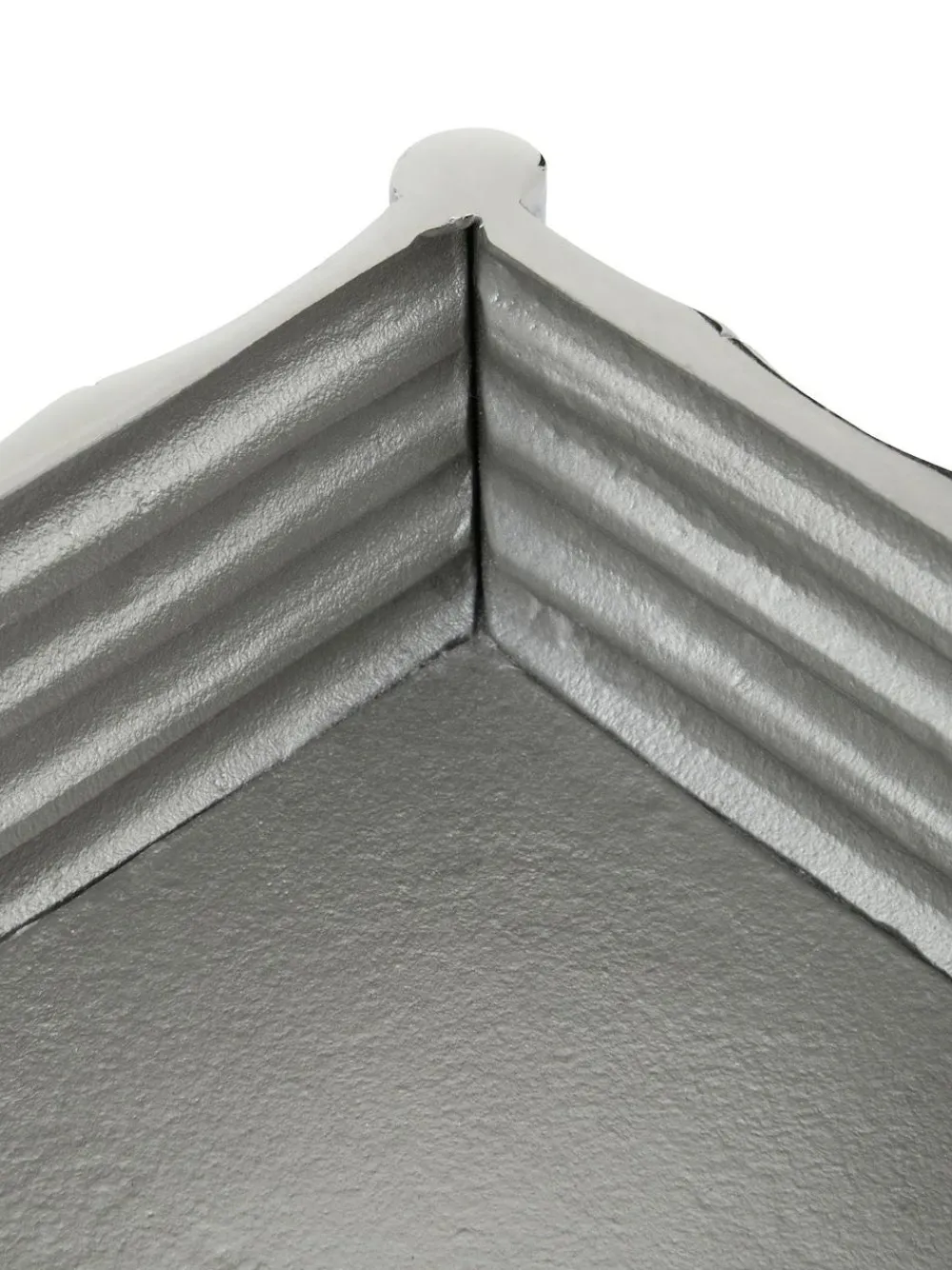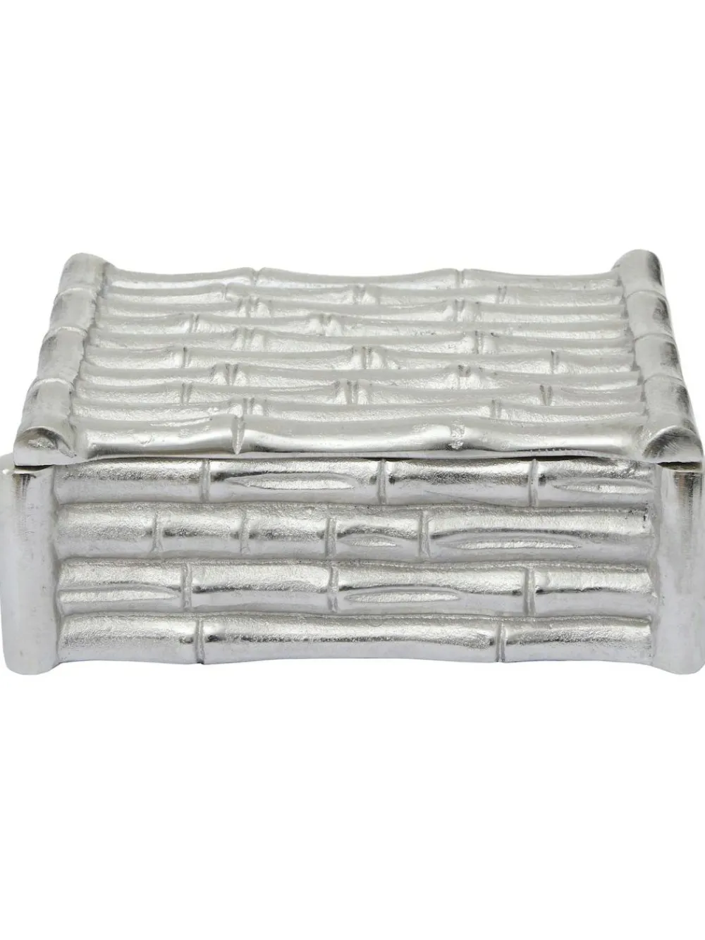 Hiba small effect silver finish trinket box Height 8.5cm Width 21cm Depth 18cm Wipe clean only. 100% Aluminium. Height 8.5cm Width 21cm Depth 18cm Wipe clean only. 100% Aluminium.
