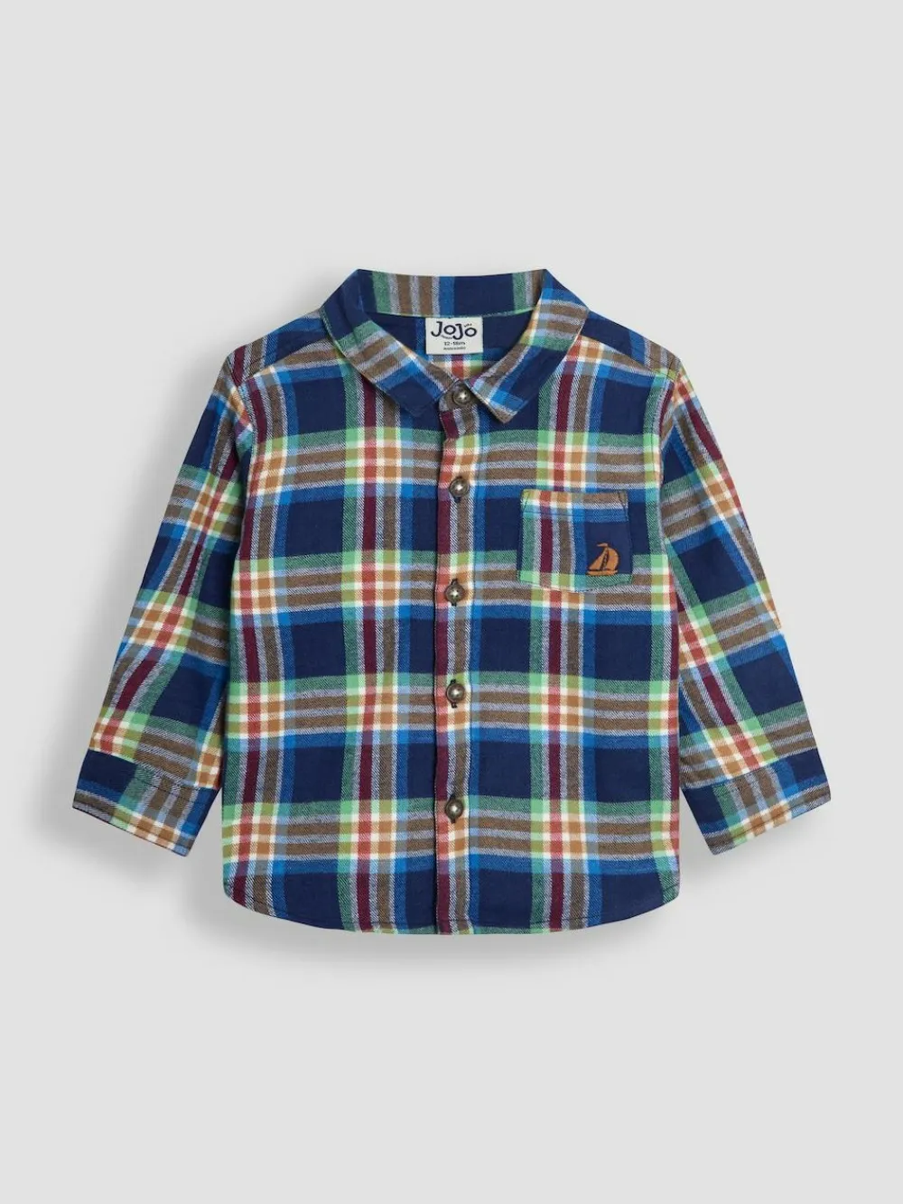Dress your little autumn adventurer in this ultra-comfy Brushed Shirt. An ideal pick for everyday, it has a button-up front, a sophisticated collar and a handy chest pocket for storing treasures. You can pair this with jeans for a dressed-down look or trousers for a special occasion. It’s made with brushed cotton, perfect for little hands that will love the supersoft touch and the warm, long sleeves mean it’s perfect for days at the playground during the cooling autumn weather.. Tartan check brushed shirt. Long sleeves. Button up front with mock wood buttons. Button up collar. Left chest pocket. Machine washable. 100% Cotton.