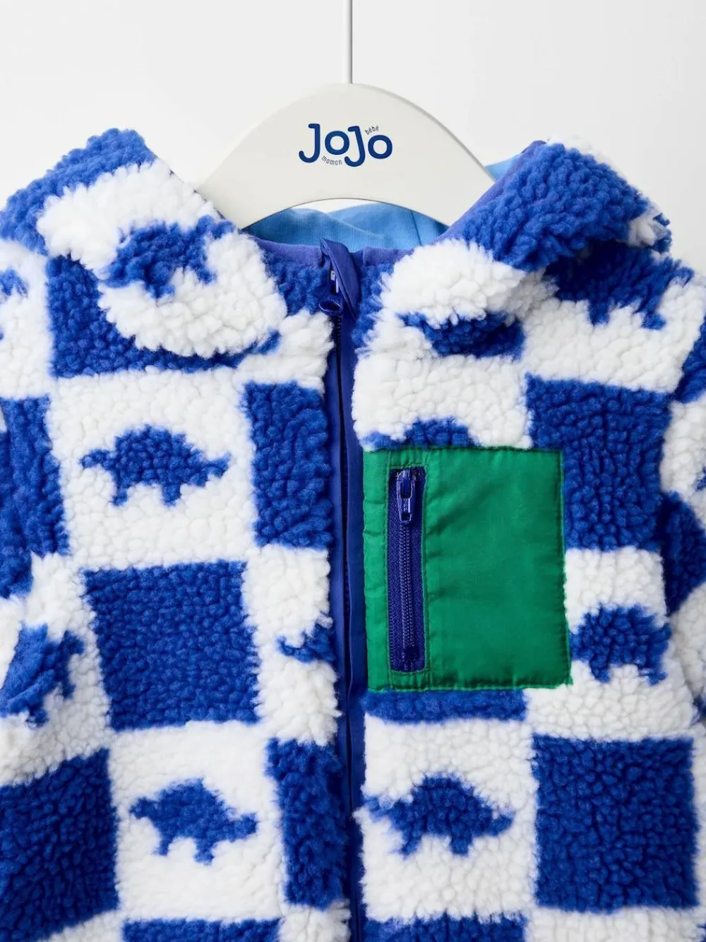 Hot Jojo Maman Bébé Hooded Teddy Fleece Jacket Blue Dino