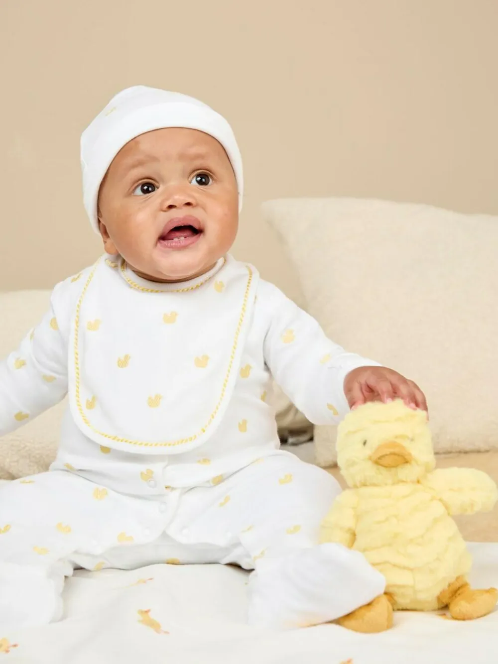 For messy dribbles and toothless giggles, this Organic Cotton Embroidered Baby Bib is the perfect accessory. With a crisp white cotton scattered with delicate duck embroidery, it makes a lovely gift for all babies.• Ideal gift• Duck embroidery to front• Baby-safe hook and loop fastening• Machine washableThis product contains at least 95% certified organically grown cotton. JoJo are certified by Soil Association to a Chain of Custody standard which verifies the percentage of organically grown cotton and tracks it from source to final product. 100% Organic cotton.