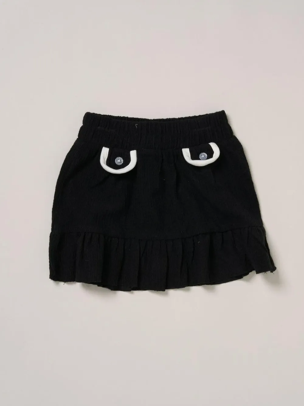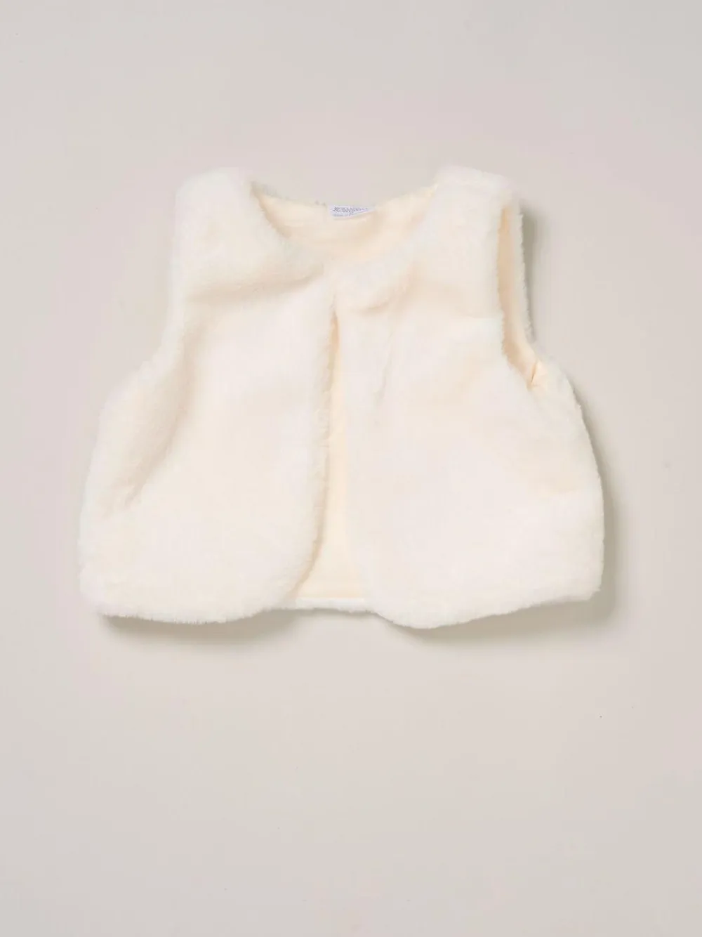 Elevate their autumn winter wardrobe with this stylish set from Willow & Whistle. Featuring a plush faux fur gilet with matching bag, paired with a soft ribbed top and a brushed textured jersey crepe skirt, this outfit combines cosy layers with playful details for everyday wear and special occasions. Machine washable. Main 100% Polyester. Lining 100% Polyester. Top 95% Cotton, 5% Elastane. Skirt 98% Polyester, 2% Elastane.