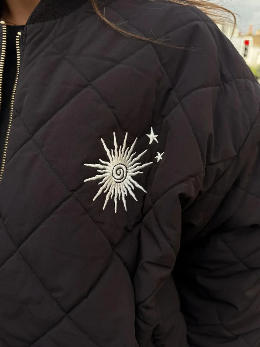 Be the first to review “Hot Never Fully Dressed Black Embroidered Quilted Fur Lined Bomber Jacket” Cancel reply