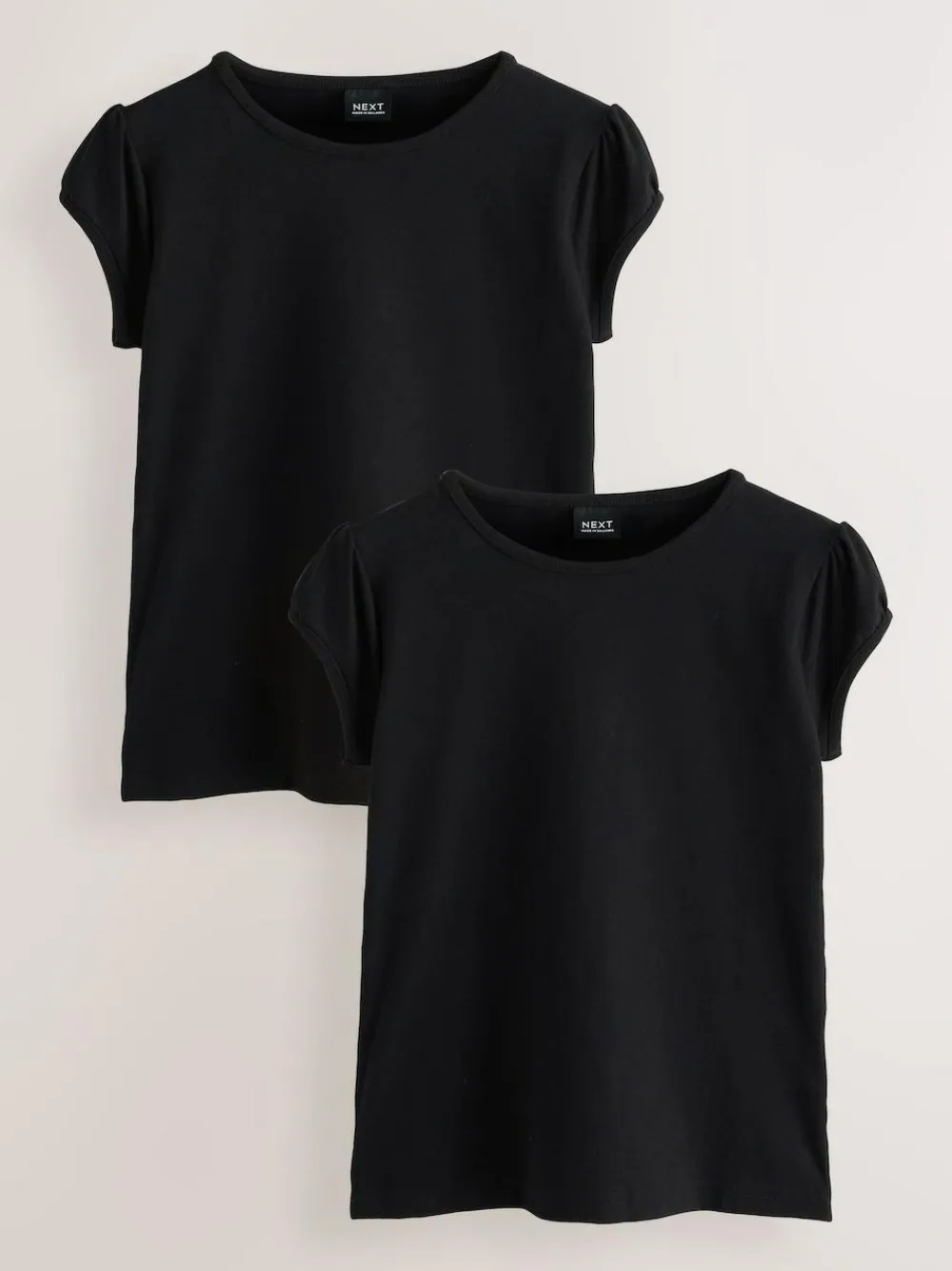 This handy 2-pack of soft cotton t-shirts is perfect as a base layer for school or everyday wear, featuring short puff sleeves, a round collar and a regular fit.2 Pack Short puff sleeves Round neck Regular fit 100% Cotton Machine washable. 2 x T-shirt 100% Cotton.