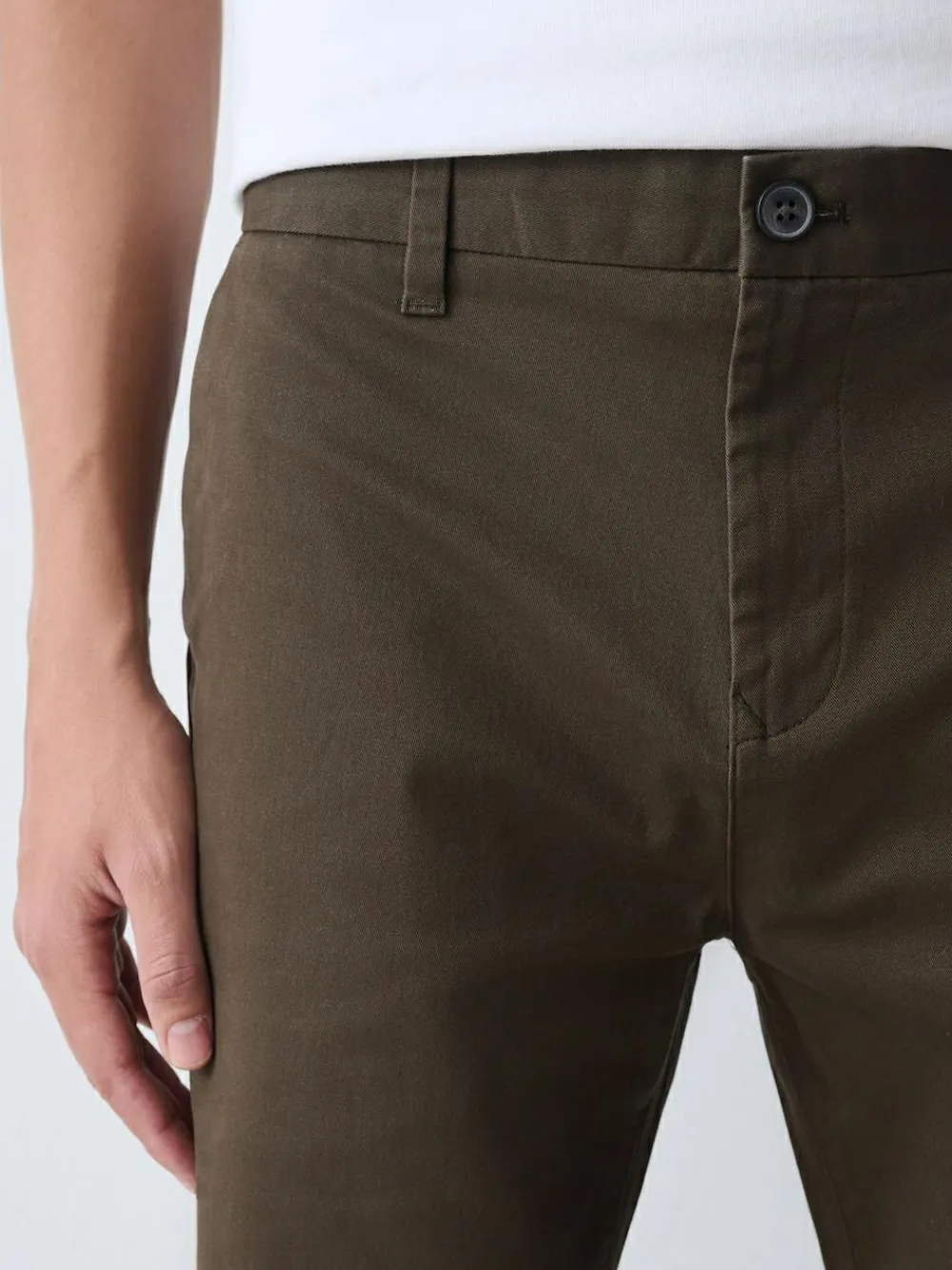 This easy-to-style chino trouser is a wardrobe classic you’ll reach for on repeat. Designed in a stretch cotton fabric for all-day comfort, the relaxed chino silhouette can be dressed up just as easily as it can be dressed down. Style with a classic tee and box-fresh trainers for effortless cool Cotton-rich Stretch fabric Classic chinos Side pockets Button and zip fastening Machine washable. 98% Cotton, 2% Elastane.