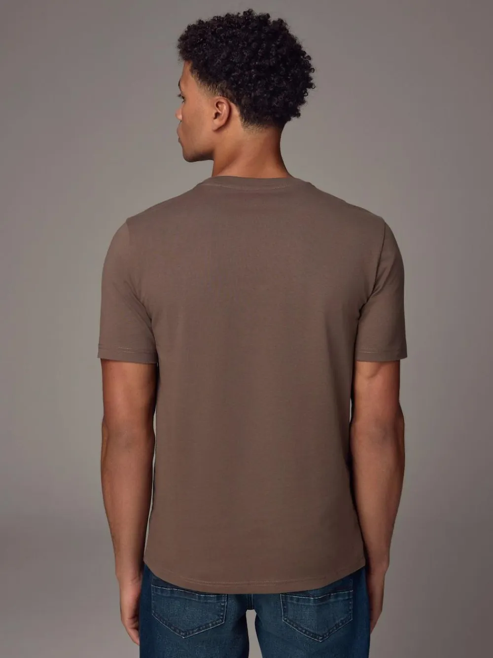Hot Next Neutral Brown Slim Fit Essential Crew Neck Cotton T-Shirt
