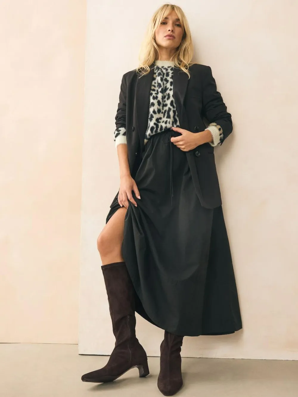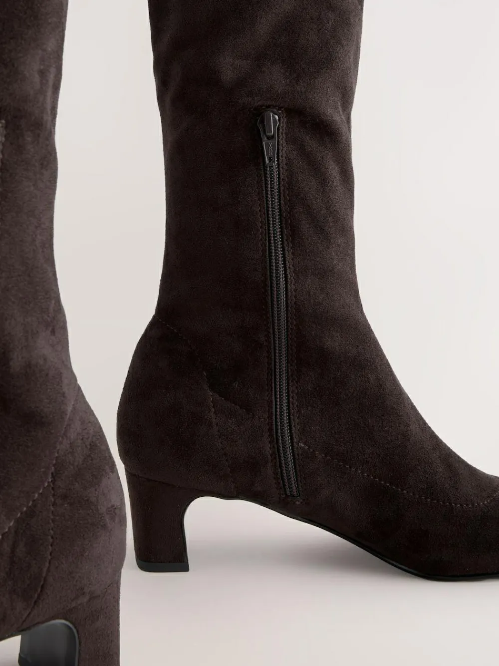 Step out in style and comfort with these essential knee-high sock boots. Crafted with a sleek faux suede upper, they feature an on-trend chisel toe and a statement block heel. The Forever Comfort® padding ensures all-day wearability, making them perfect for versatile day-to-night fashion. Chisel toe Faux suede upper Block heel Inside zip for easy access Forever Comfort® padding Heel height 5cm. Upper – Textile, Lining & Sock – Textile, Other Materials, Sole – Other Materials.