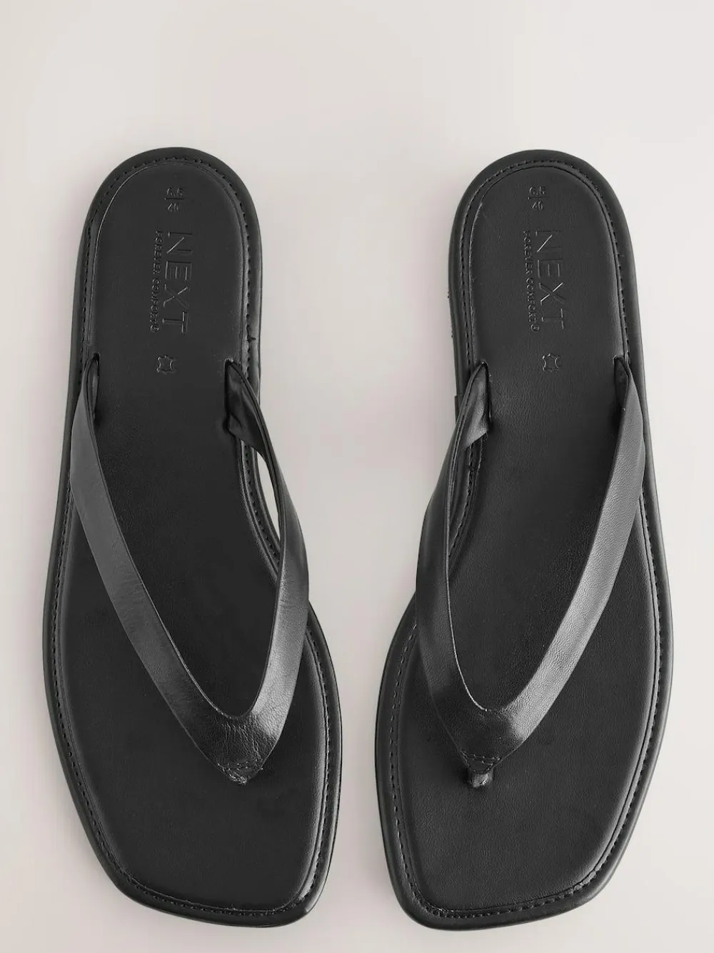 Hot Next Standard/Wide Fit Square Toe Thong Sandals Black Leather