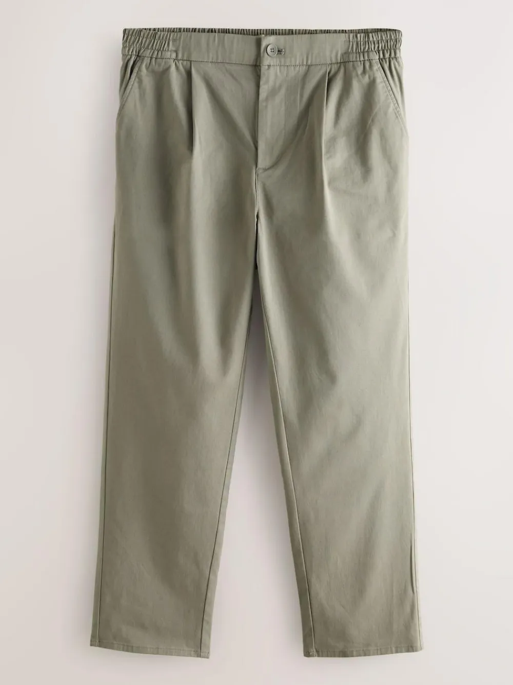 Hot Next Straight Fit Pleated Stretch Chinos Trousers With Elasticated Waist Clay