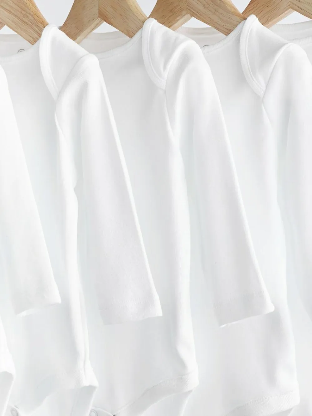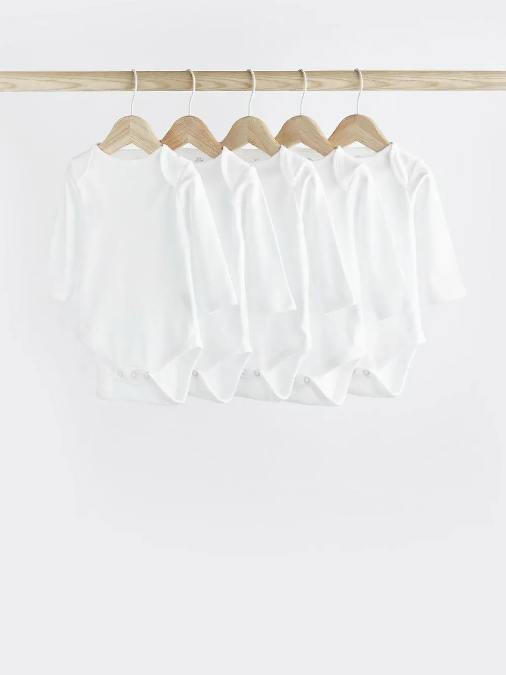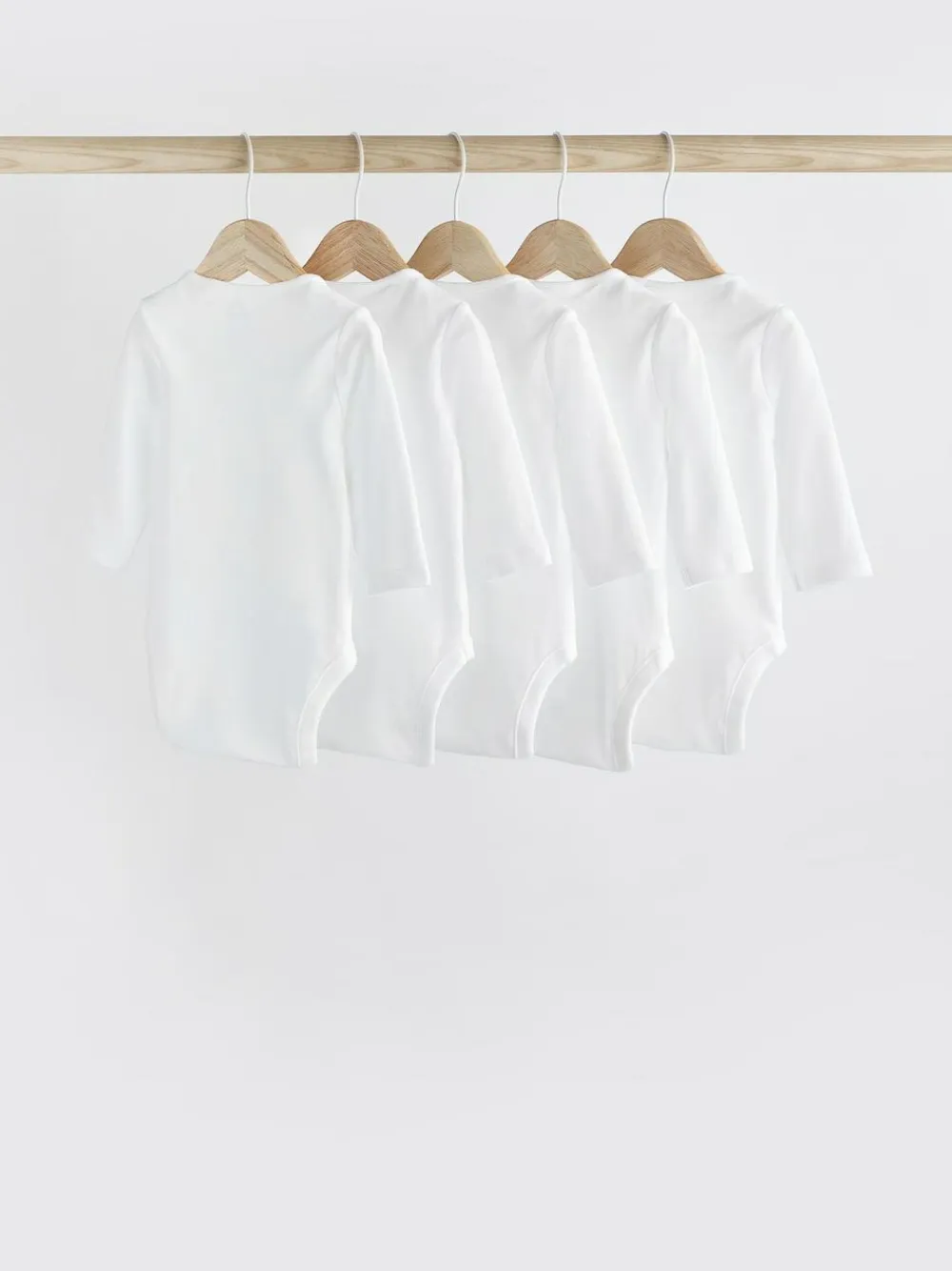 Hot Next White 5 Pack Essential Baby Long Sleeve Bodysuits