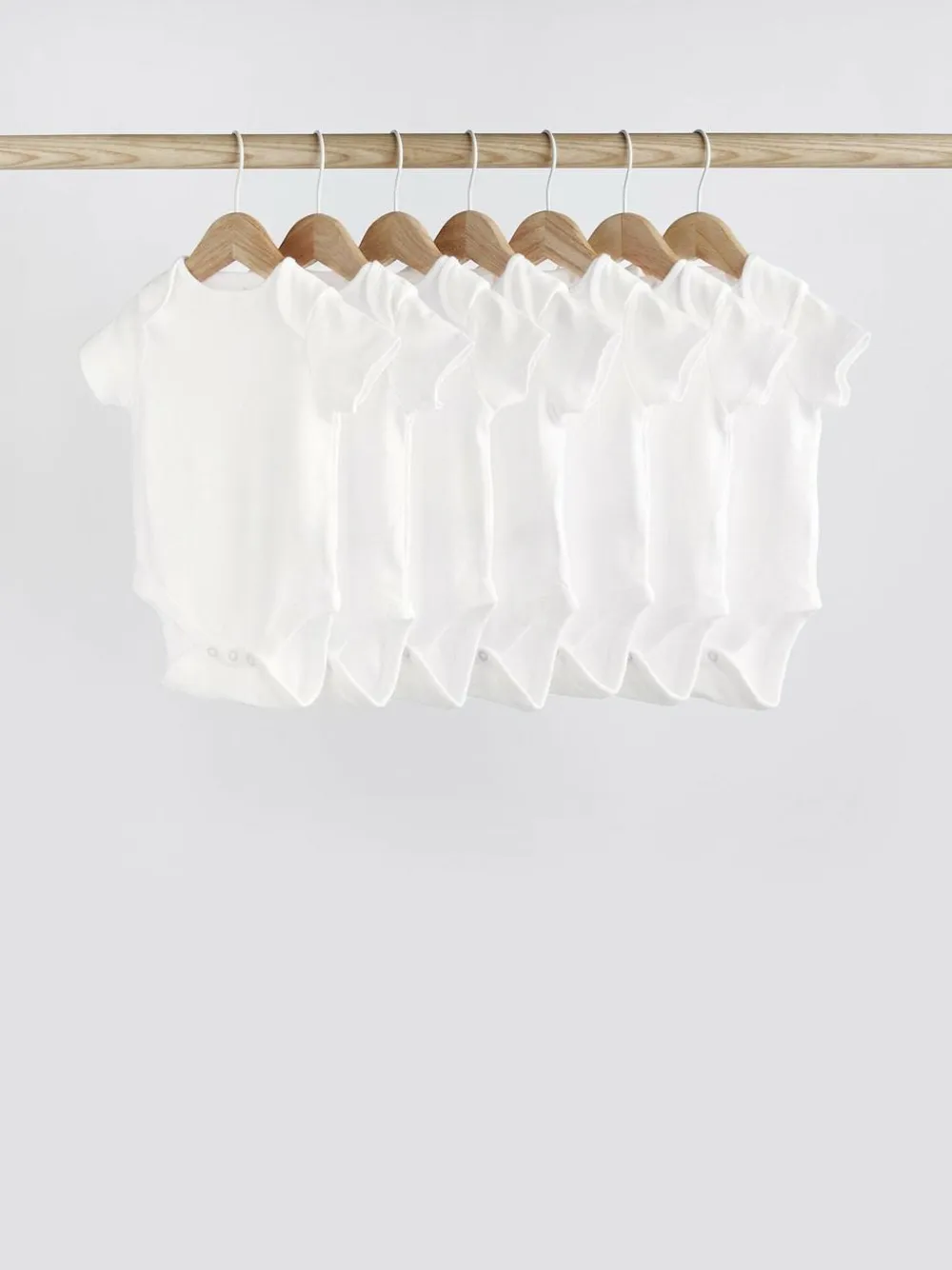 Hot Next White Essential 7 Pack Short Sleeve Bodysuits