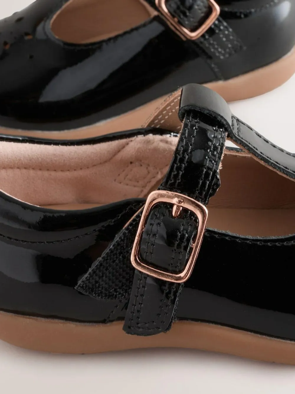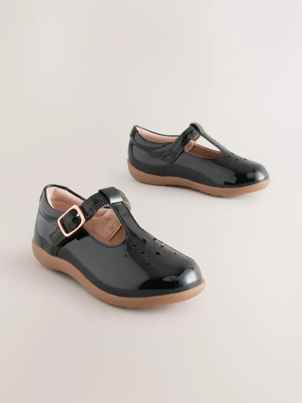 Hot Next Wide Fit (G) First Walker T-Bar Touch Fastening Shoes Black Patent Leather