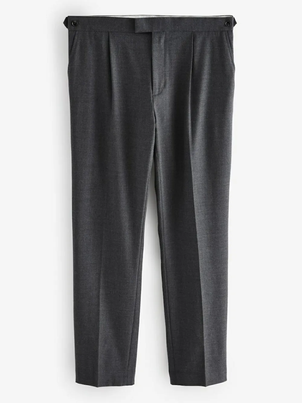 Hot Next Wool Rich Smart Textured Trousers With Side Adjusters Charcoal Grey