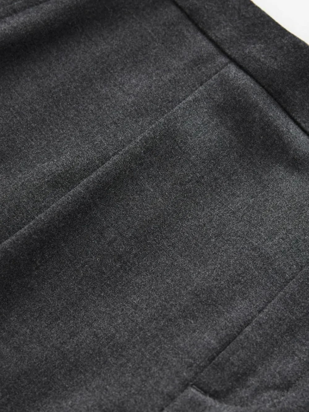With a wool-rich crepe fabric for a warm and formal feel, these versatile charcoal grey trousers are ideal for the office or a day out, featuring an adjustable waistband, a central leg crease and pockets. Wool-rich fabric Side adjuster tab for a comfortable fit Crepe textured Side and rear pockets Dry clean only. 70% Wool, 14% Viscose, 14% Recycled polyester, 2% Elastane.