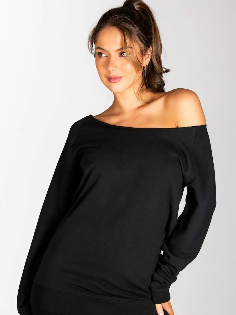 Transition seamlessly from day to night with this dark navy off shoulder sweat top for women. Designed for versatility, this longsleeve top can be styled off-the-shoulder for an easy chic and classy look. Featuring raw edge detailing and a cozy, soft fabric, it’s the perfect addition to your wardrobe. – Longline Fit with Raw Edge Neckline – Versatile Off-Shoulder Styling – Day-to-Night Look – Small branding along the left sleeve – Machine Washableb Machine washable. 70% Cotton, 30% Polyester.