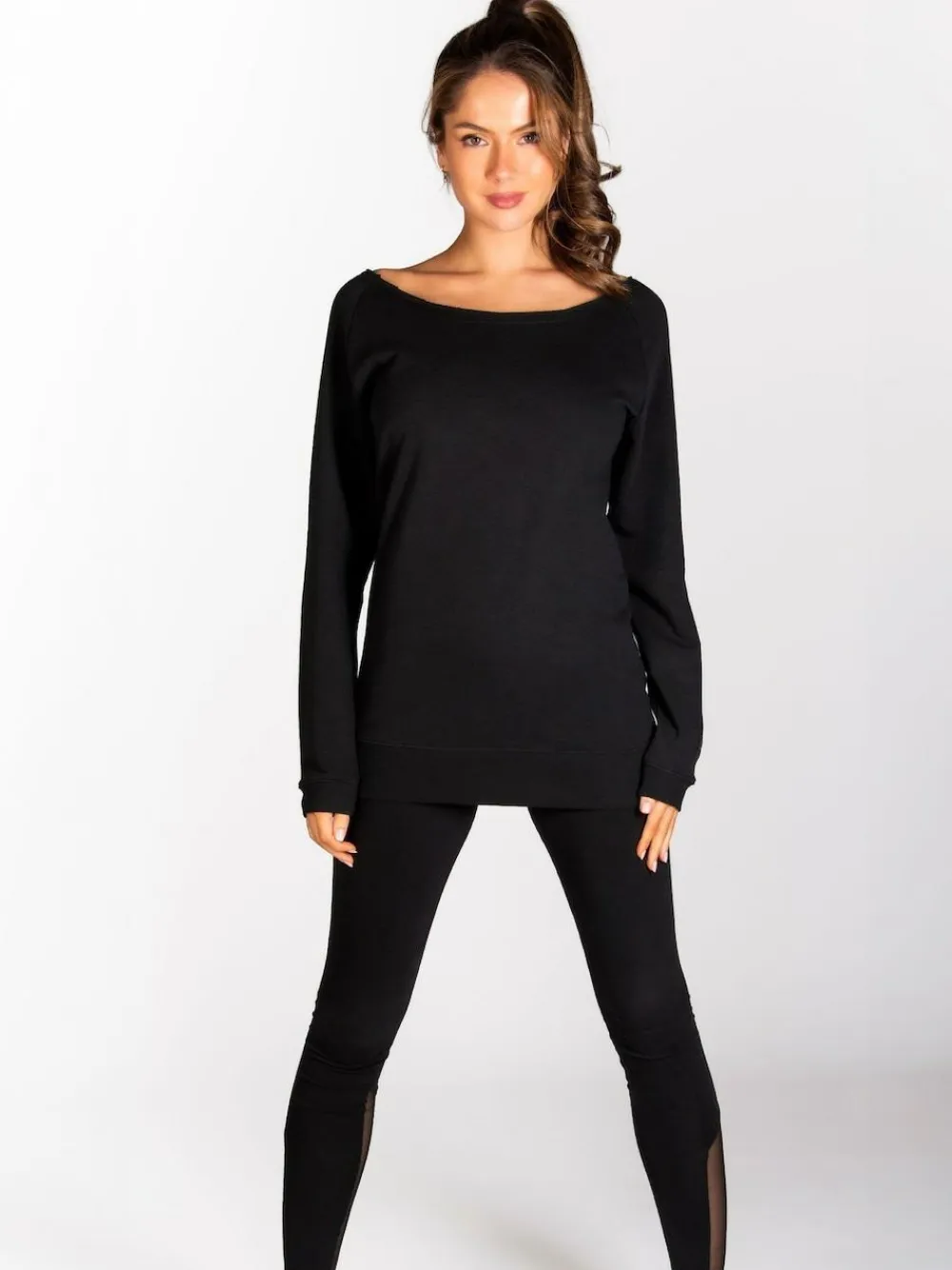 Hot Pineapple Womens Off Shoulder Longline Sweatshirt Black