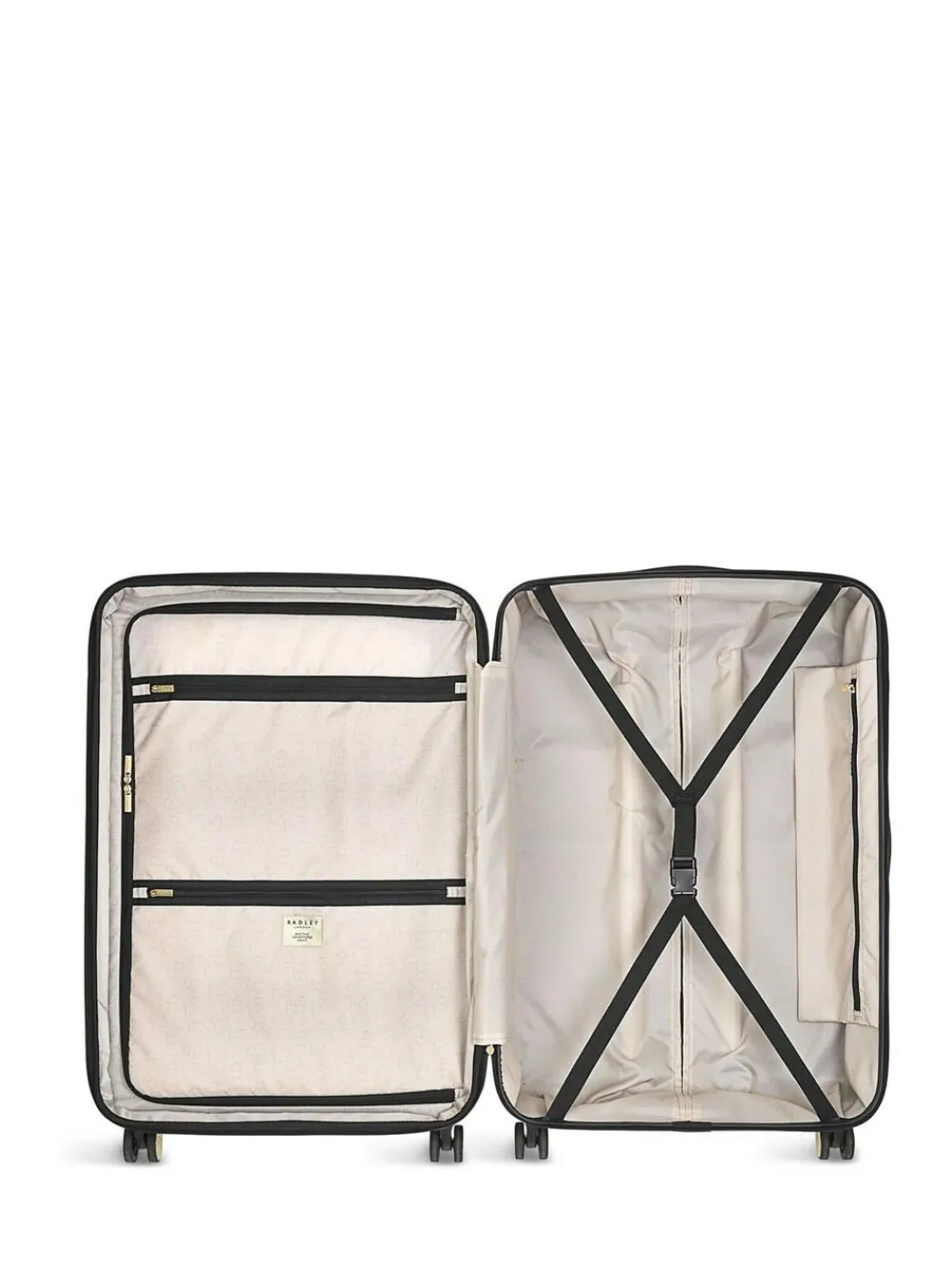 Head off on your next staycation or international trip with Radley London by your side. Our Lexington suitcase is crafted with a durable hard-shell exterior, easy-glide wheels and multi-height trolley handle. Functional, branded features that make every journey stress-free. And you can rest assured that your items are safe inside, thanks to the interior pockets, webbing tapes and the T.S.A. combination lock. – Crafted in ABS/PC- W77 x H51 x 31cm/33cm when expanded – Weight: 4.6kg- Capacity: 101L unexpanded/116L expanded- Hard shell case with horizontal rib shaping- Embossed Radley dog to back- T.S.A. combination lock- Four wheels- Multi-height trolley handle- Grab handle on case- Zip-around expander – Fabric lining- Interior zipped pockets and webbing tapes- Metal Radley dog stud to trolley handle- High-shine hardware- Logo embossed zip pulls and wheel hubs 100% Plastic.