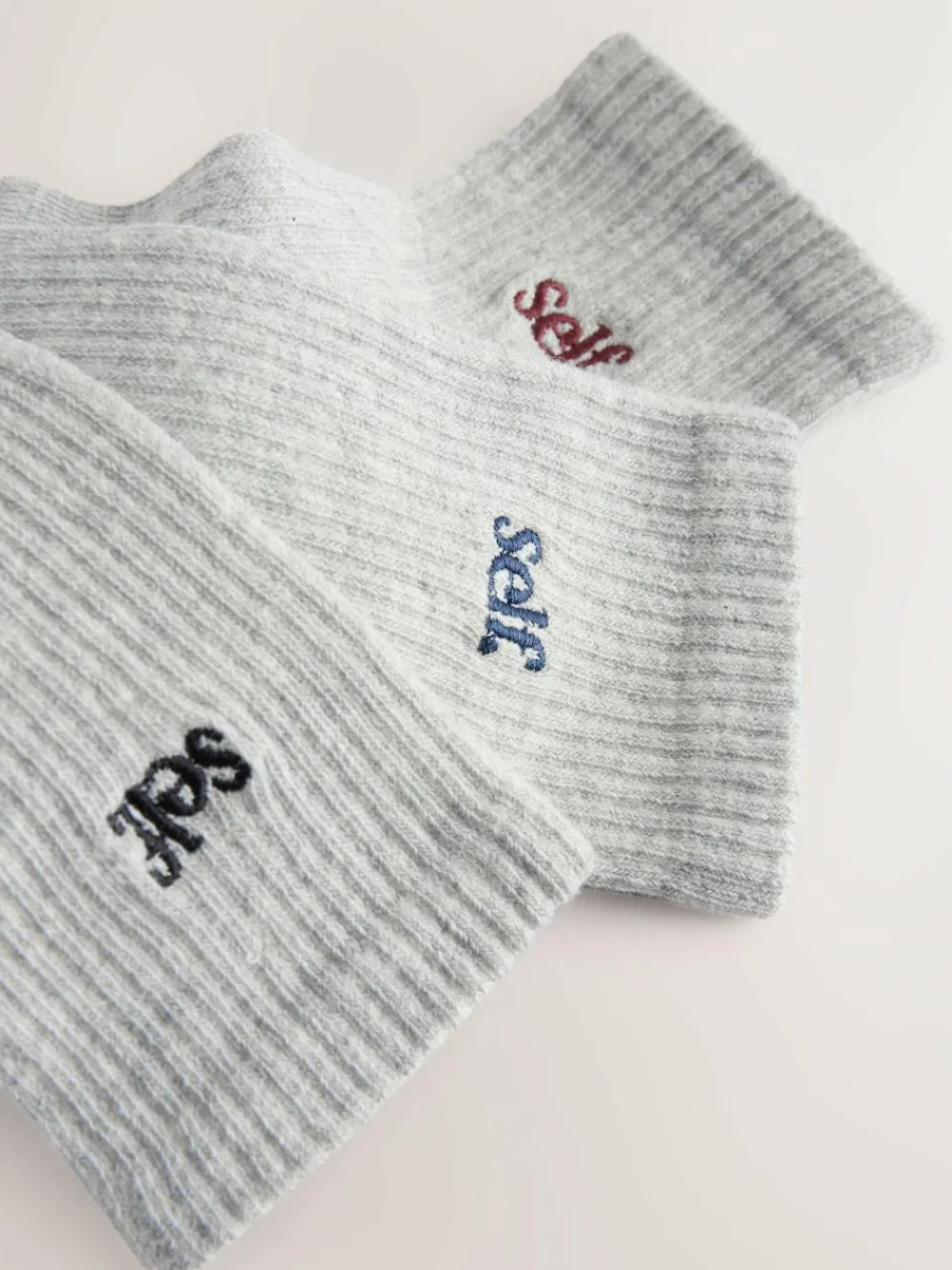 Lounge around and be your complete self. with our multipack of socks. The pack contains three pairs of soft ribbed socks that have been designed in a cotton blend with a ribbed finish, cushioned sole and each feature the self. embroidery on the front. Pair with leggings and your favourite trainers for a chic casual look, or our self. joggers for the complete look. Cushioned sole Ribbed design 3 pack 50% Cotton, 24% Nylon, 23% Polyester, 3% Elastane.