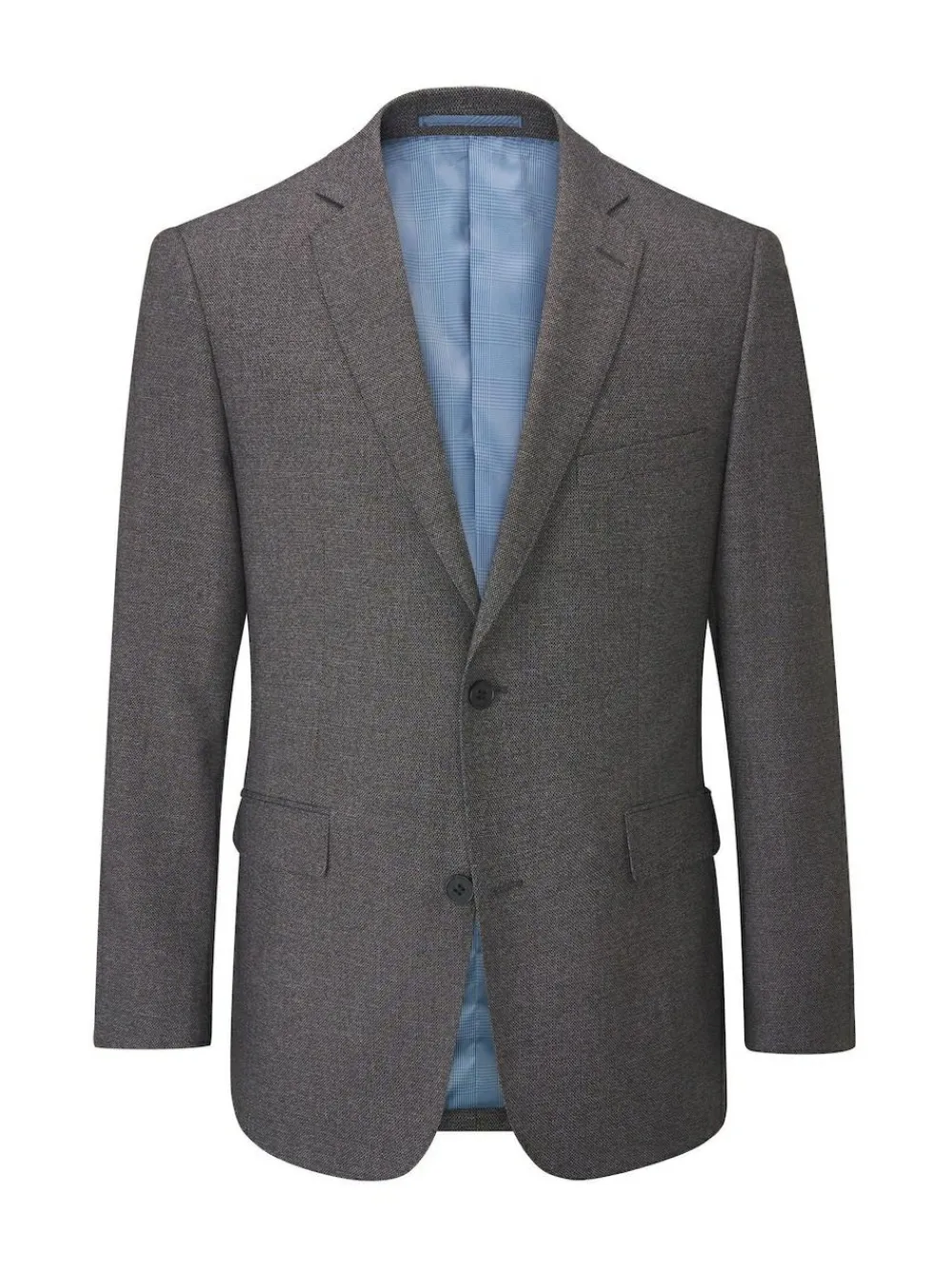 I’m Harcourt, a heritage-inspired tailored fit single-breasted suit jacket in a rich grey textured tweed effect fabric. I’m perfect for the office, wedding or any formal occasion! My features include distinctive grey buttons, straight flap pockets, a blue check inner lining and twin side vents. See my matching Skopes Harcourt Grey Tailored Fit Suit Trousers and Skopes Harcourt Grey Single Breasted Suit Waistcoat to complete the look Dry clean only. 82% Polyester, 18% Viscose.