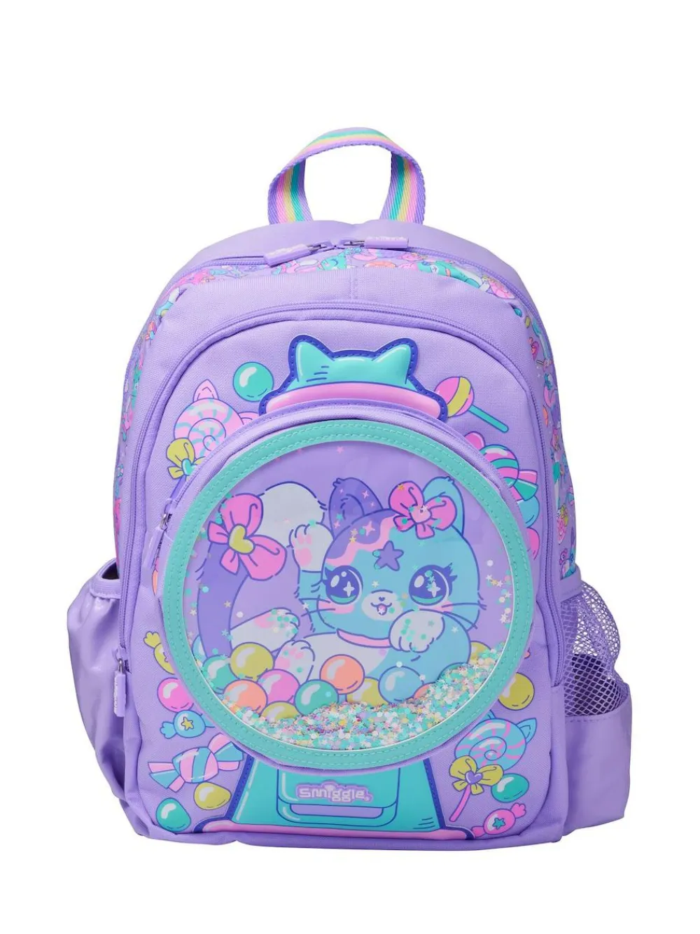 Reach new heights with our Adventurous collection! From bold Bikers, daring Dinos, curious Cats and magical winged Unicorns, there’s a brave friend for all. Our Adventurous Junior Character backpack is the perfect pick for school, travel and so much more! Each character backpack features an adorable 3-D character applique and unique design details ranging from a glitter-filled applique pocket to a padded character applique. Plus, stacks of handy features including 3 zipped compartments, dual drink bottle sleeves and comfy padded shoulder straps. Junior Smigglers will love bringing this bag along on all adventures! Three zipped compartments, main compartment with double zip. Dual drink bottle sleeves. Padded adjustable shoulder straps. Carry handle. Internal compartment fits A4 notebook. Internal name label. Height 26cm Width 15cm Depth 38cm 50% Polyester, 50% PU.