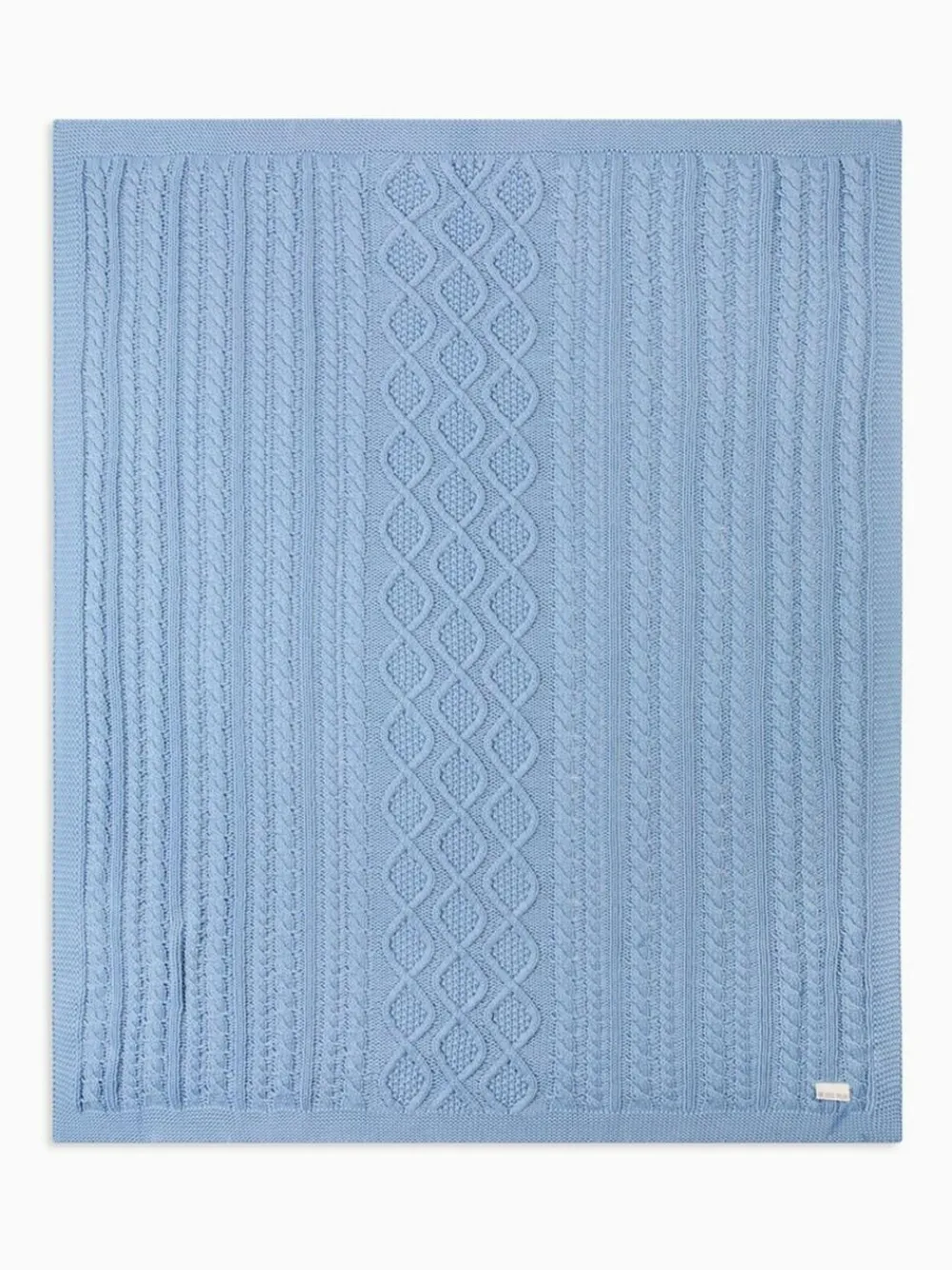 Hot The Little Tailor Baby Blue Fisherman Cable Knitted 100% Cotton Blanket