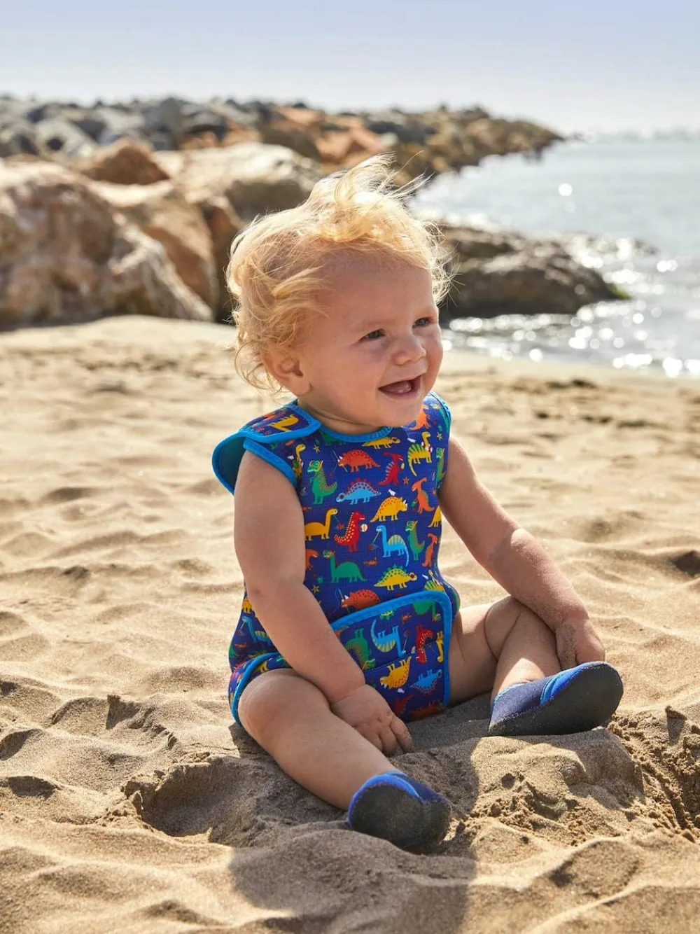 We know that a warm baby in the water is a happy baby, which is why we developed our baby wetsuit. A blue Dinosaur Print Baby Wetsuit features a flexible, comfortable fit and thick fabric that keeps little ones warm so they can stay in the water for longer. This wrap-around style diaper is adjustable with Velcro™ fastening, and it opens completely flat for easy diaper changing, making it even more convenient. All-over dinosaur print Keeps babies warmer for longer Opens up completely for easy changing Wraps around the body Velcro™ fastening 100% Polyester Neoprene Hand wash only Do not tumble dry Do not iron Do not dry clean Rinse by hand in 30-degree water immediately after use and allow to dry out of sunlight to avoid discolouration Hand wash only. Main 100% Polyester. Inner 100% Polyester.