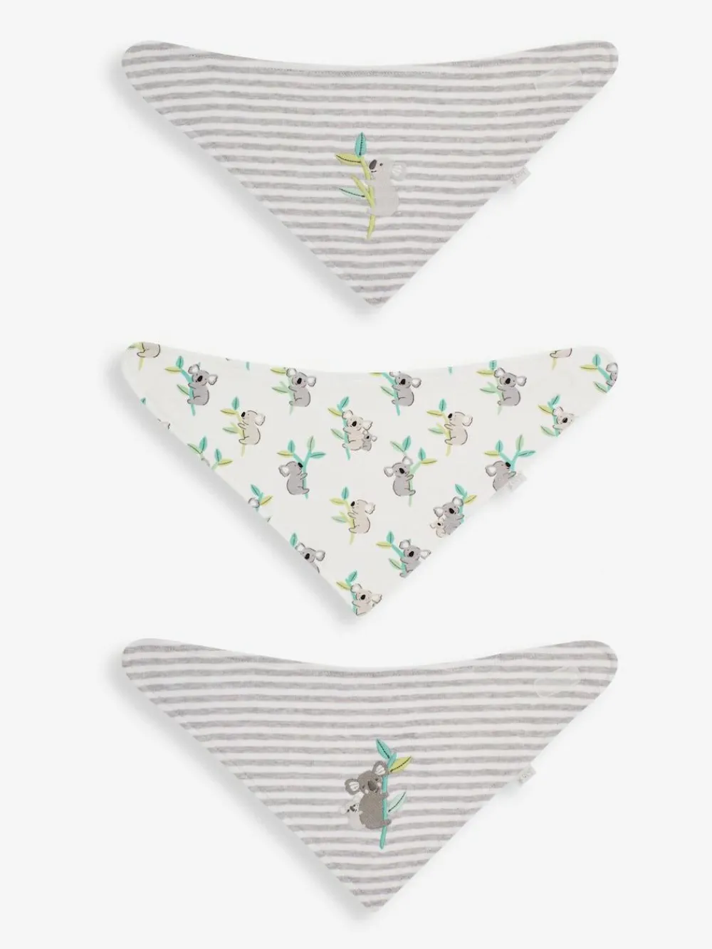 Jojo Maman Bébé Grey Koala 3-Pack Cotton Baby Dribble Bibs^ Bibs