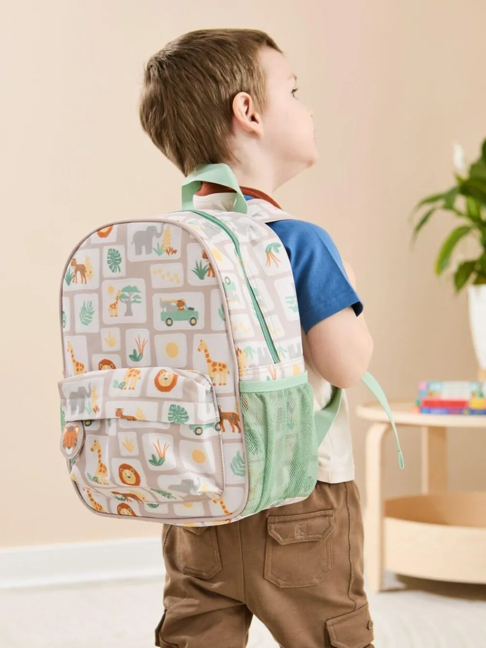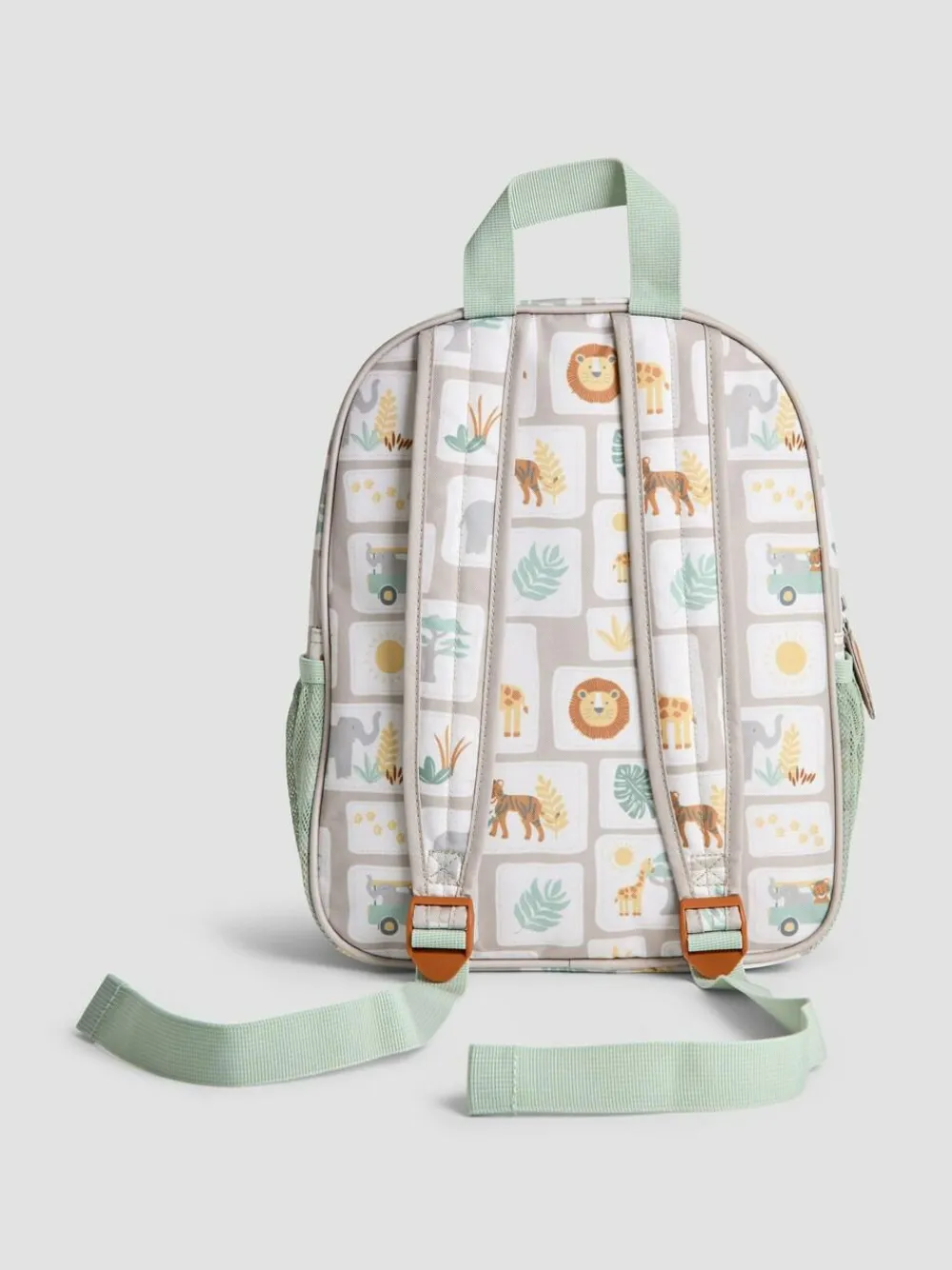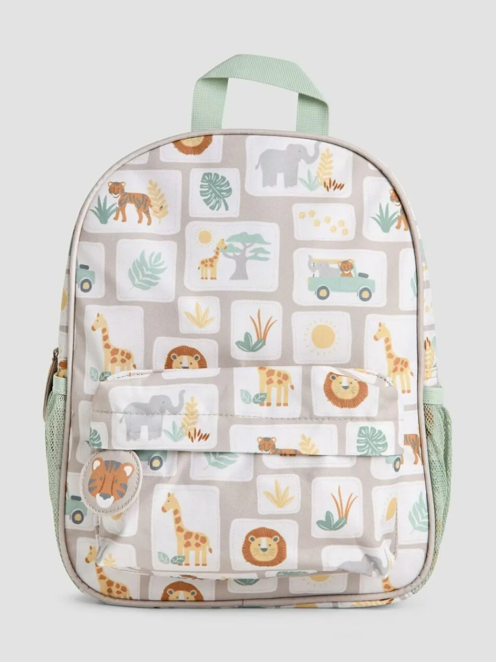 When packing for nursery and day trips, this backpack is the coolest thing to take on adventures. Say hello to this Safari stamp print Medium Backpack! Featuring adjustable straps, it’s not only comfy, but it also encourages your little ones to take responsibility for their belongings. This backpack is just the right size for lunchtime-munching and snacktime-crunching and comes with a handy side pocket that’s perfect for storing a drink, making it an absolute must-have, whatever they get up to throughout the day, ready for wildlife exploring days! Safari print backpack Large zipped compartment and zip front pocket Name tag inside Adjustable shoulder straps Hanging loop and carry handle Drinks holder Wipe clean only Suitable from 3 years 32cm x 25cm x 12cm