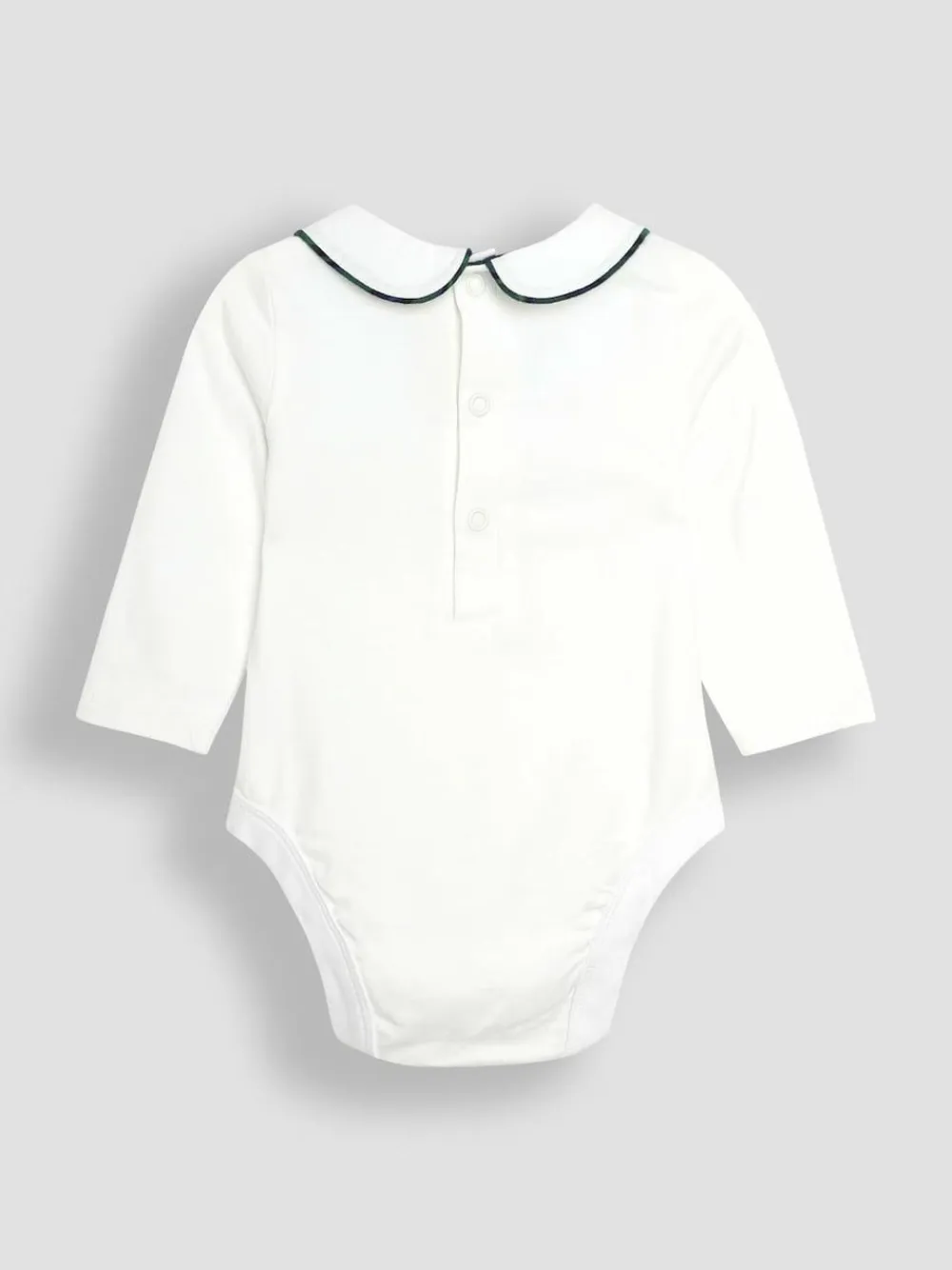 Jolly party days and festive family time call for a trendy navy tartan outfit. Crafted from super soft cotton to snuggle into, these dungarees and long sleeves are a match made in wintery heaven. You’ll love the traditional (and oh-so practical) details, from the shoulder buttons and stretchy waistband to crossover straps for a snug fit. Just add a wriggly baby and twinkling fairy lights!• 2-piece set includes dungarees and long-sleeved top • Navy blue tartan print • Top features embroidered collar and back poppers• Buttons to shoulder straps • Front chest pocket • Crossover dungaree straps • Stretchy waistband • Machine washable Top 100% Cotton. Collar 97% Polyester, 3% Elastane. Woven 100% Cotton.