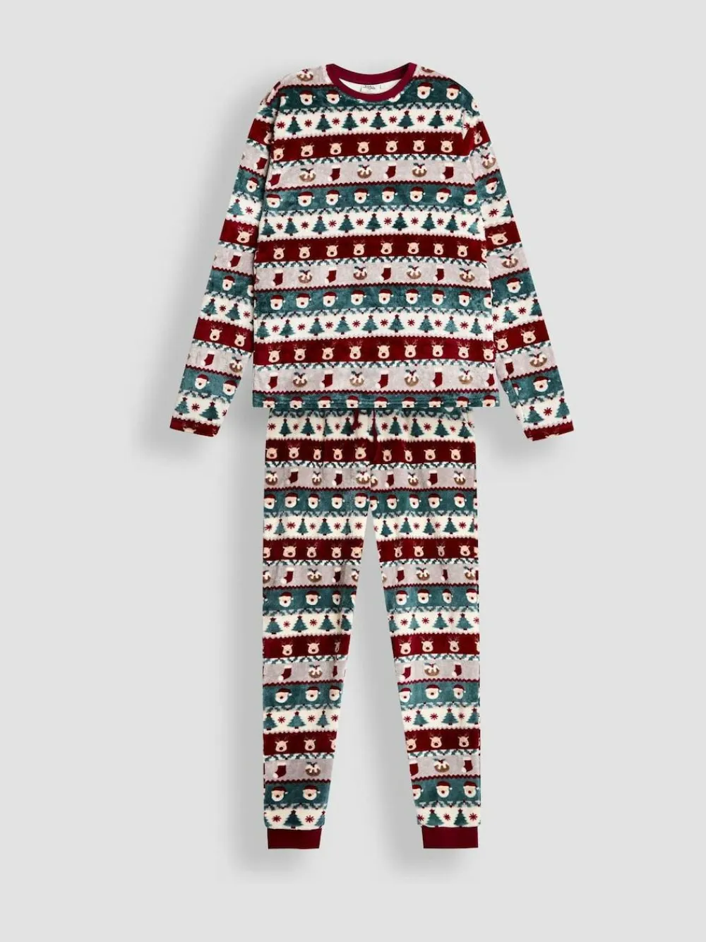 Jojo Maman Bébé Red Men’s Christmas Fair Isle Fleece Pyjama Set^ Pyjamas