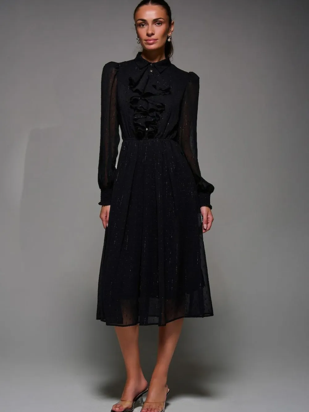 Jolie Moi Black Textured Chiffon Ruffle Shirt Dress^Women Occasion Dresses|Midi Dresses