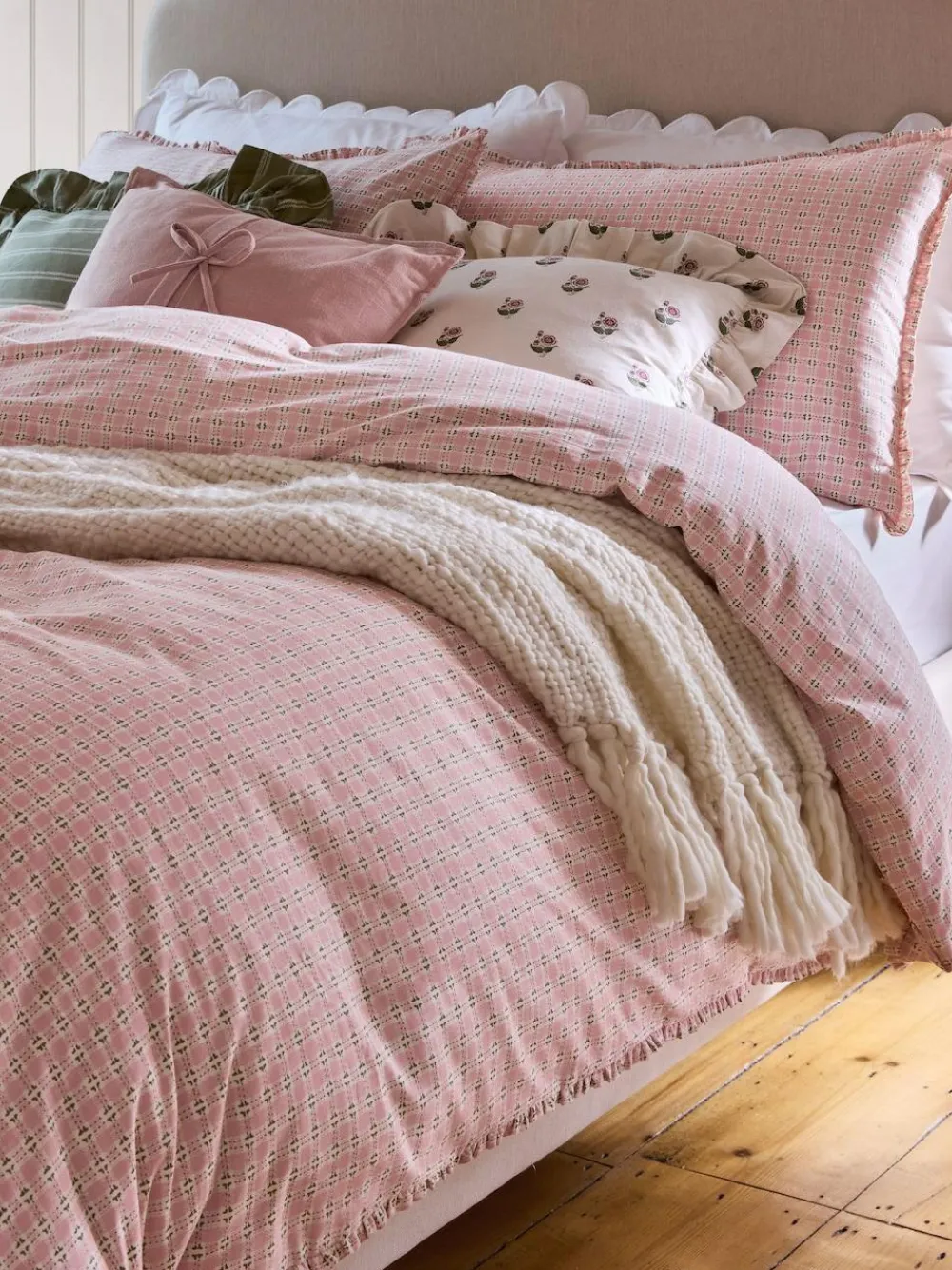 Laura Ashley Pink Cresswell Gingham 100% Cotton Duvet Cover and Pillowcase Set^ Branded Bedlinen