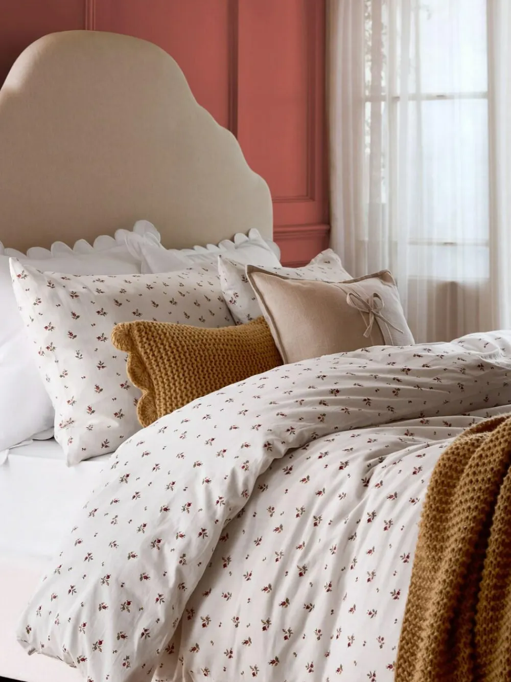 Charming and pretty, the Aylesmore Ditsy Print Duvet Cover and Pillowcase Set was inspired by a printed fabric sample held in the Laura Ashley archive. Featuring a small-scale floral ditsy print, this design has a charming country feel to it. Set includes duvet cover and 2 pillowcases (Includes 1 pillowcase with single set) 100% Cotton