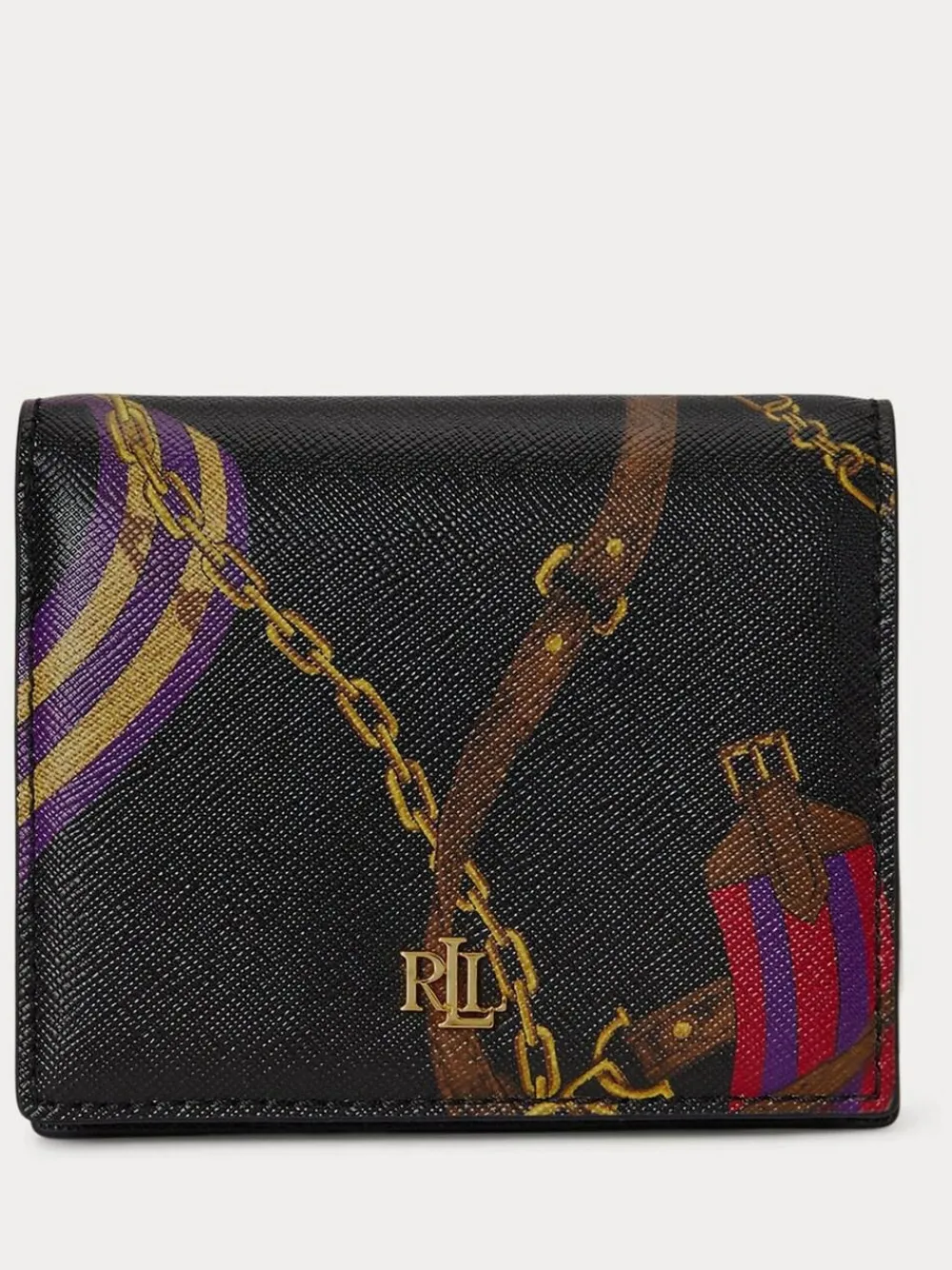 Lauren Ralph Lauren Belting/Blk Belting-Print Leather Compact Wallet^Women Purses