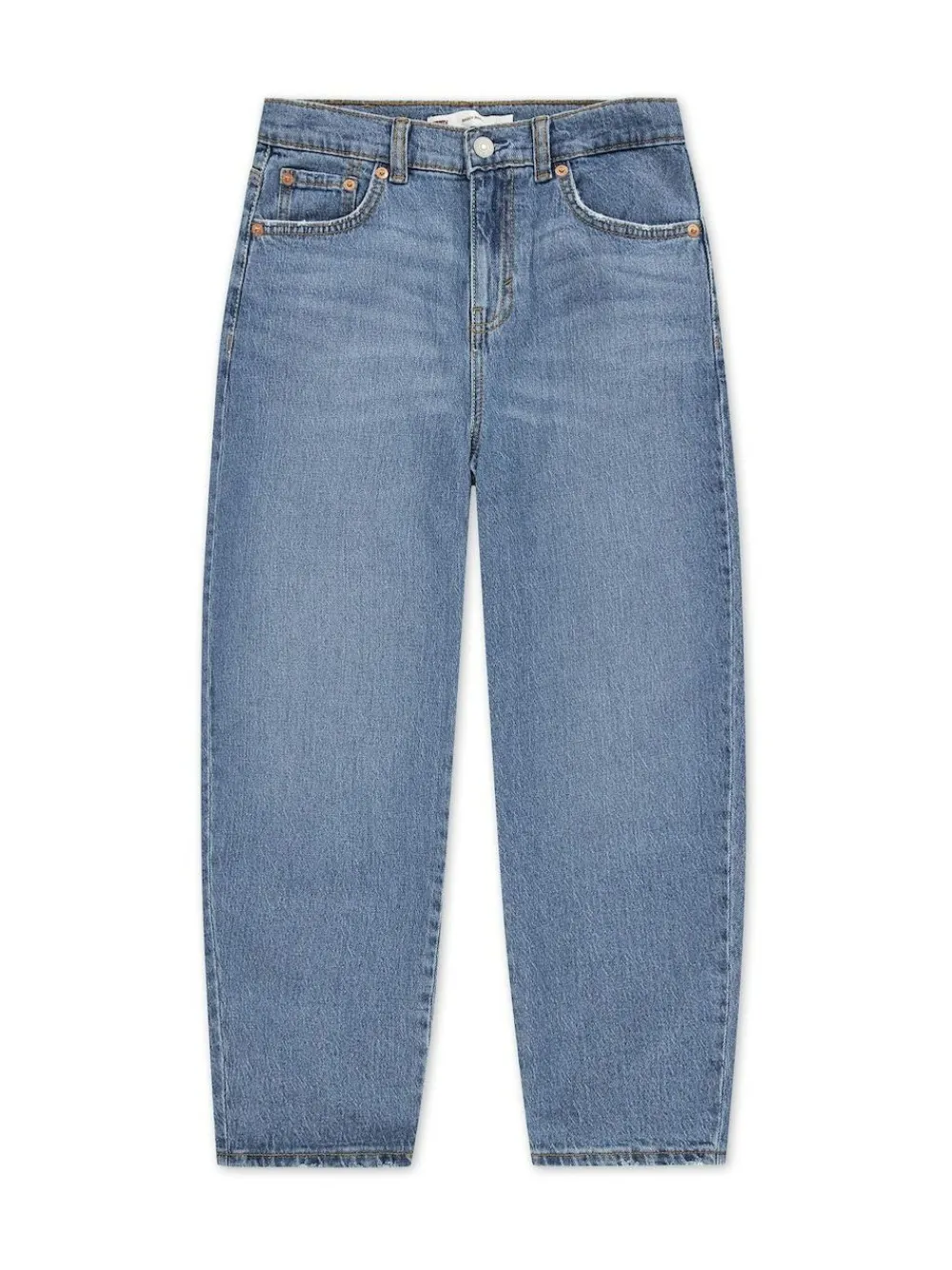 Made from quality orange peel character denim with stretch. High-rise. Relaxed through the hip and thigh. Roomy barrel leg widens from the thigh to the knee and then tapers back to the ankle. Signature Levi’s® 5-pocket design. Adjustable waistband. Levi’s® patch. Belt loops. Hook and eye closure. Zip fly. 97% Cotton, 2% Viscose, 1% Elastane.