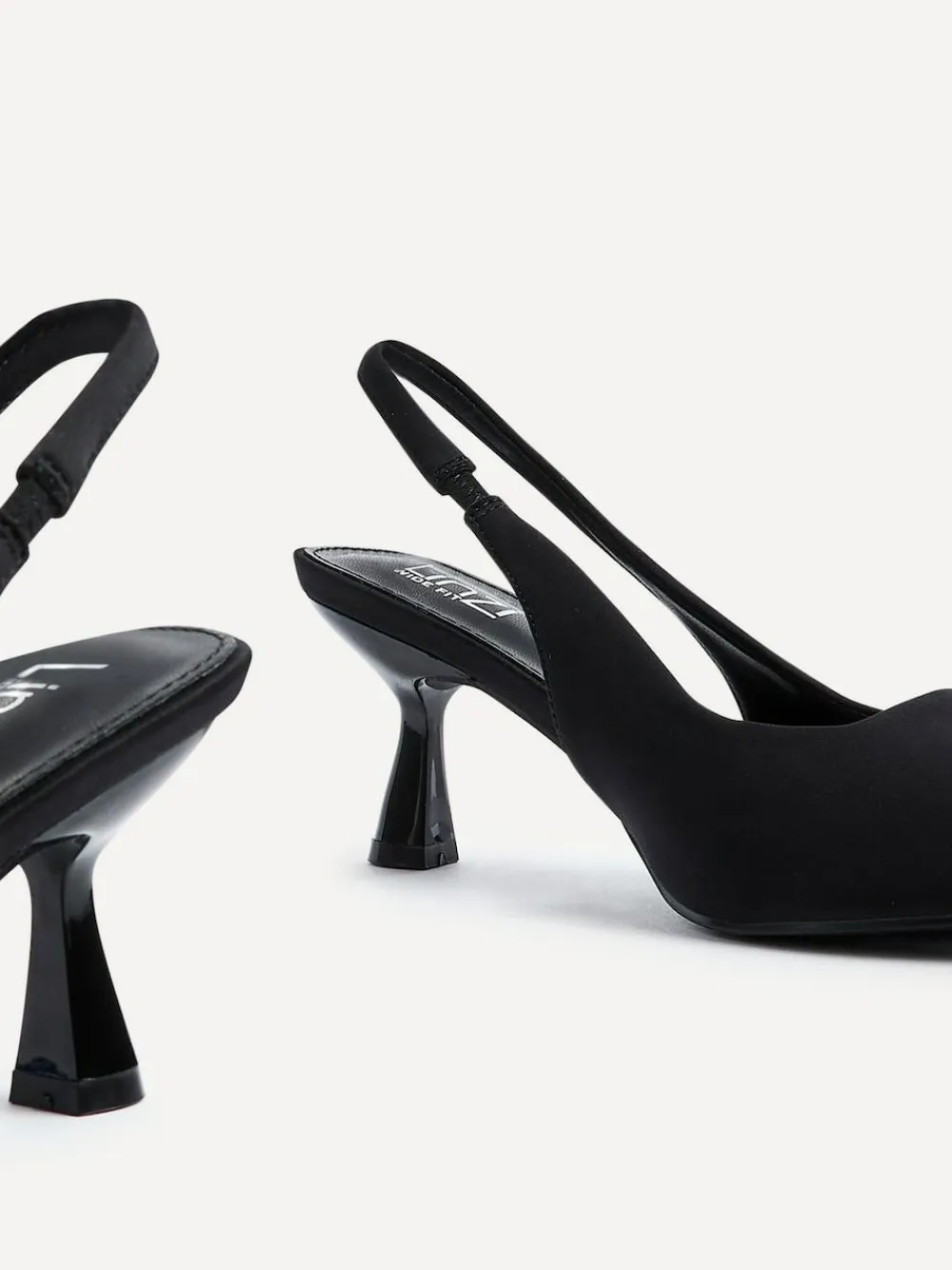 Elevate your look with our Black Izzie stiletto court shoes. The sleek finish and slingback design add a touch of elegance to any outfit. Step with confidence in our luxurious heels. Designed with our Linzi wide fit range, you can confidently showcase your style without compromising on comfort. Please note that the Leopard print pattern may vary in each pair. Heel height 6.5cm. Upper – Textile, Lining and Sock – Other Materials, Sole – Other Materials.