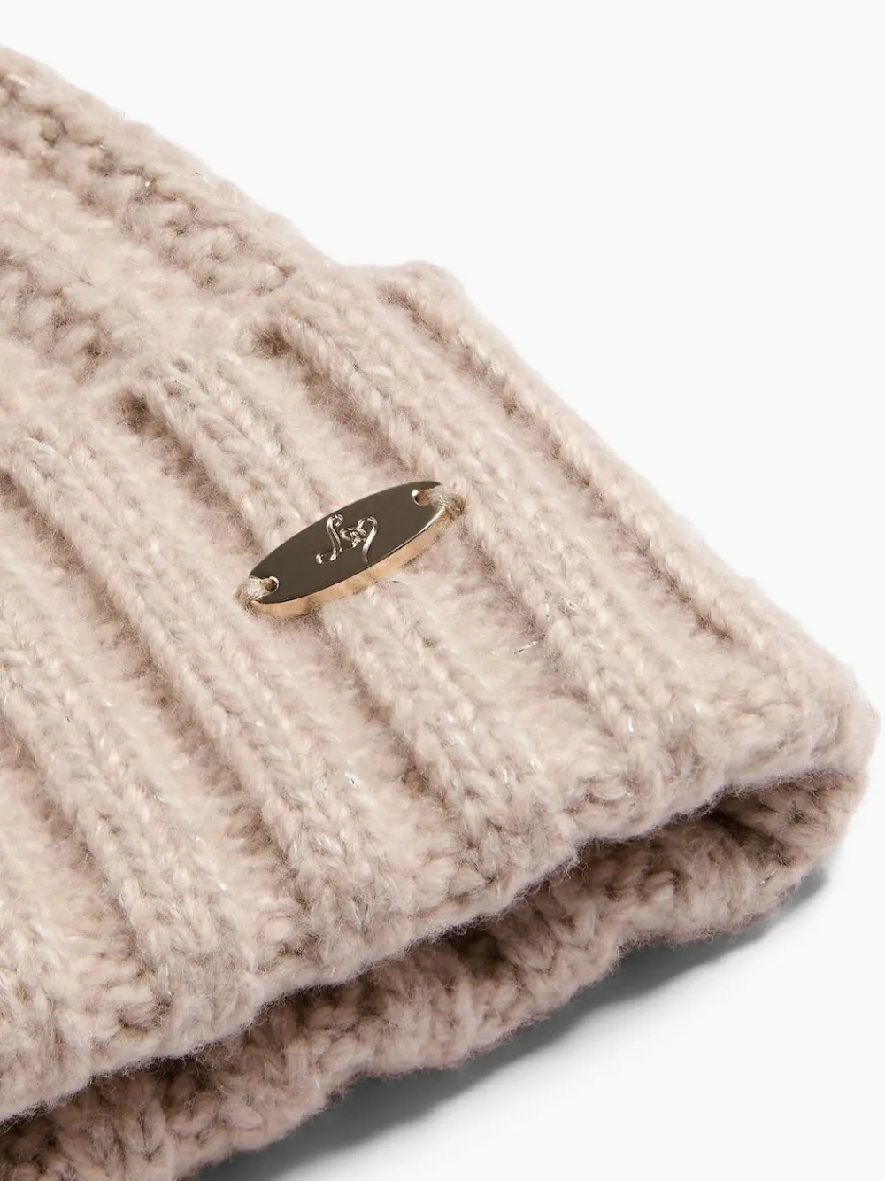 Lipsy Beige Shimmer Ribbed Pom Hat