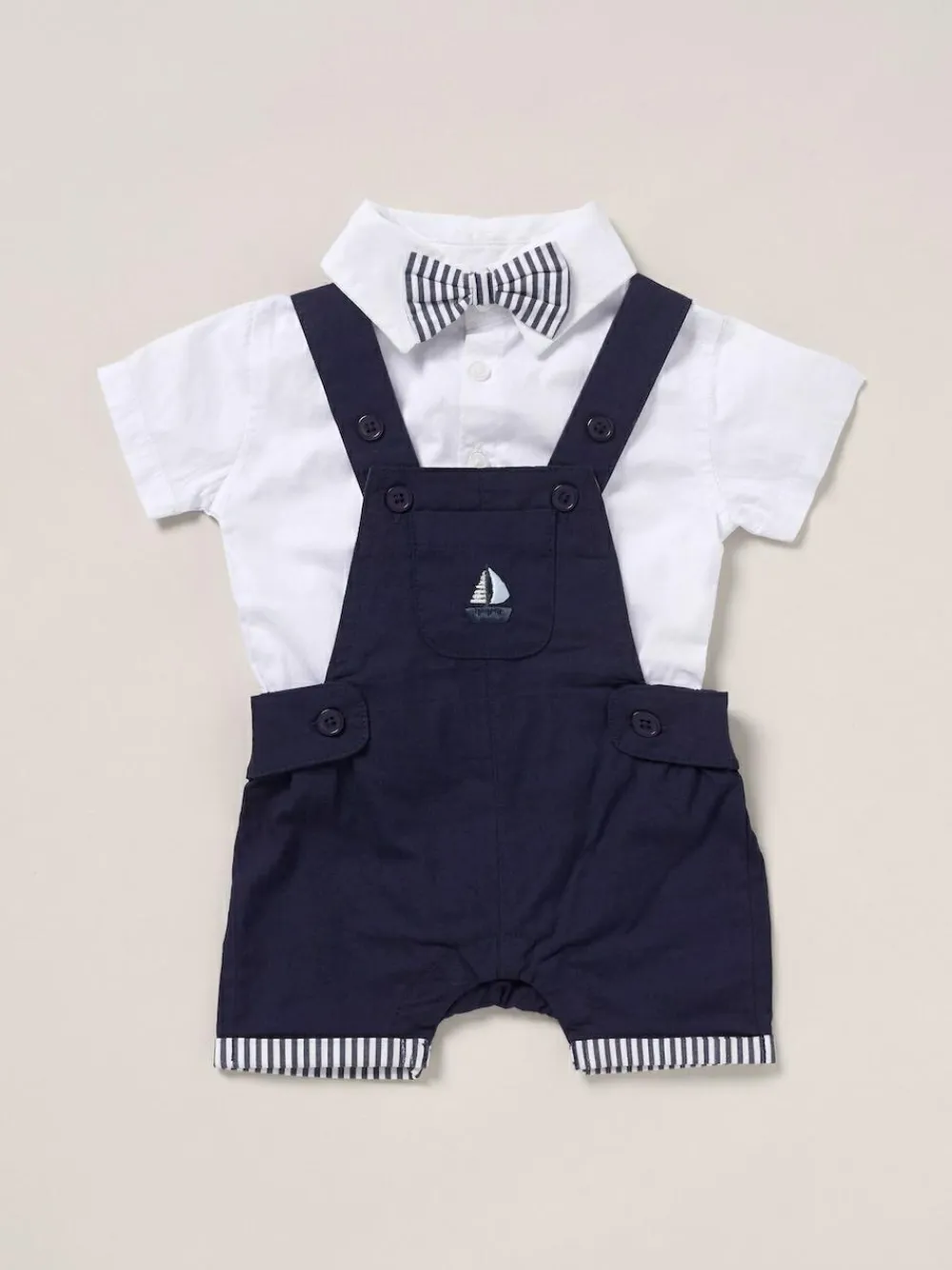 Little Gent 100% Cotton Bodysuit Shirt Dungarees and Bowtie Outfit Set^BOY Dungarees