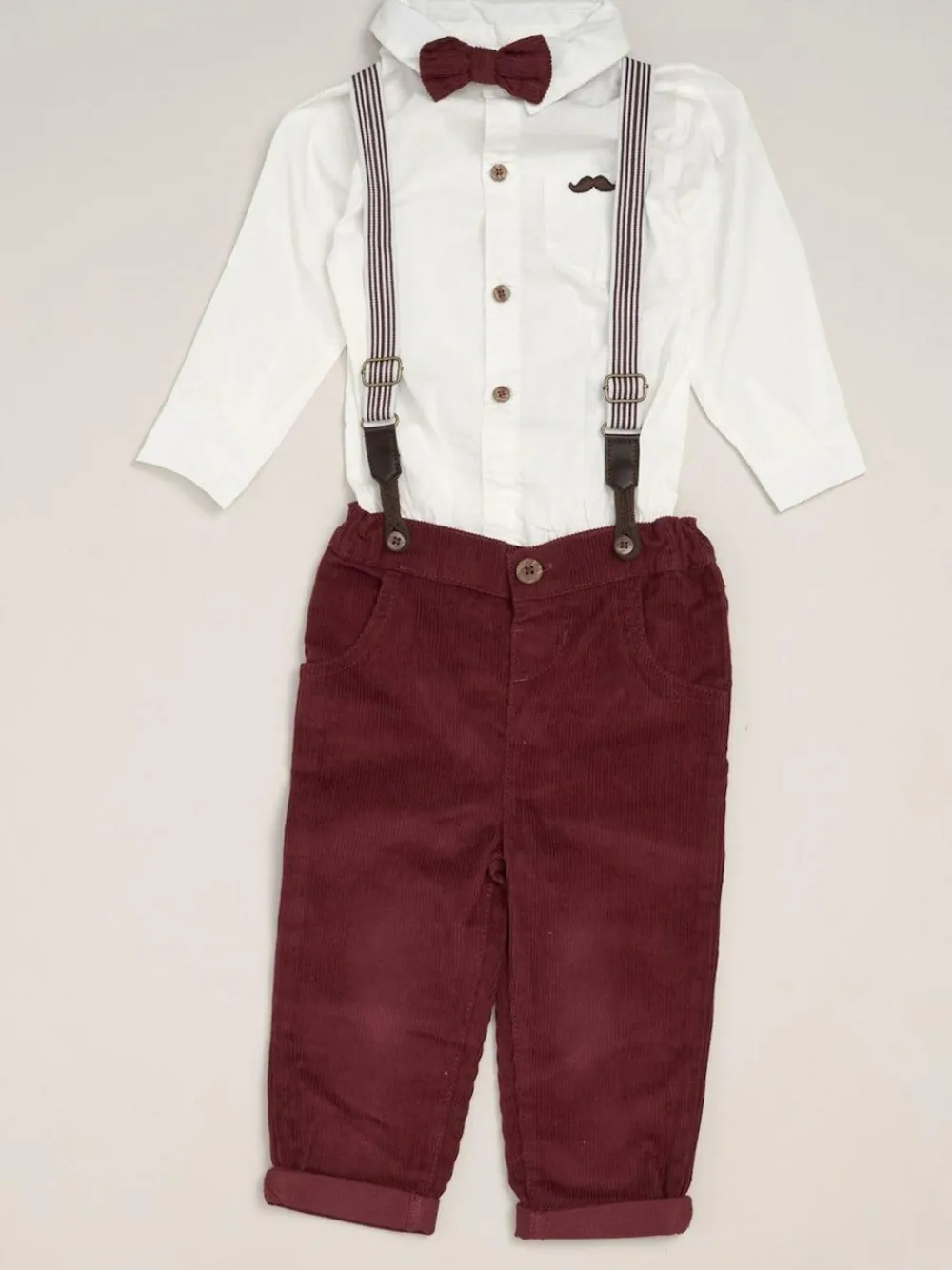 Little Gent Corduroy Bow Tie Mock Shirt and Trousers With Braces Outfit Set^BOY Occasionwear|Shirts